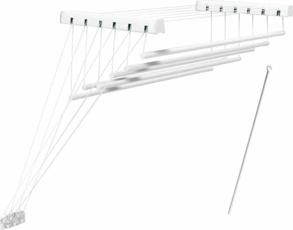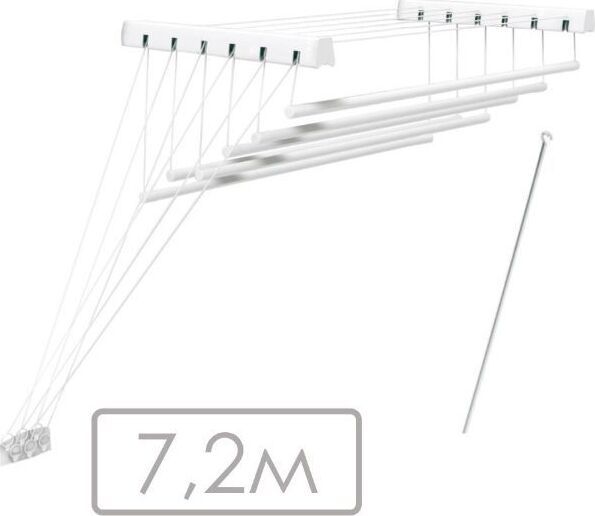 ЦВЕТ: белый. РАЗМЕР ИЗДЕЛИЯ: 430 x 1 200 x 1 350 мм. МАТЕРИАЛ: металл + полипропилен. Сушилка для белья с возможностью крепления на стену или к потолку. Оптимальна для использования в ванной комнате или на балконе. Изготовлена из нержавеющей стали с полимерным порошковым покрытием, которое защищает от воздействия влаги и предотвращает механические повреждения. Суммарная длина поверхности для размещения белья - 7,2м. Максимальная нагрузка - 12кг.