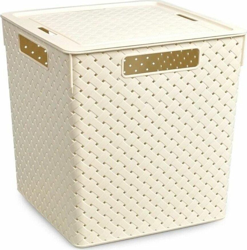 ЦВЕТ: слоновая кость. РАЗМЕР ИЗДЕЛИЯ: 294 х 294 х 301 мм. МАТЕРИАЛ: Полипропилен. Емкость из пищевого пластика для хранения и переноски мелких аксессуаров и продуктов питания. В объеме 23л корзинки оптимальны для хранения одежды и обуви, овощей и корнеплодов, книг и игрушек и пр. Изделие имеет ручки с четырех сторон, что удобно для использования и переноски. Бортик по периметру крышек обеспечивает фиксацию при штабелировании корзинок друг на друга.
