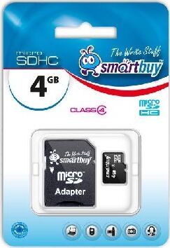 Карта памяти micro SDHC, объем - 4GB, Класс скорости - Class 10 Макс. Скорость чтения, Мб/с - 18 Макс. Скорость записи, Мб/с - 8 , может использоваться в телефонах, коммуникаторах, видеокамерах, цифровых фотоаппаратах, персональных компьютерах, принтерах и других электронных устройствах.