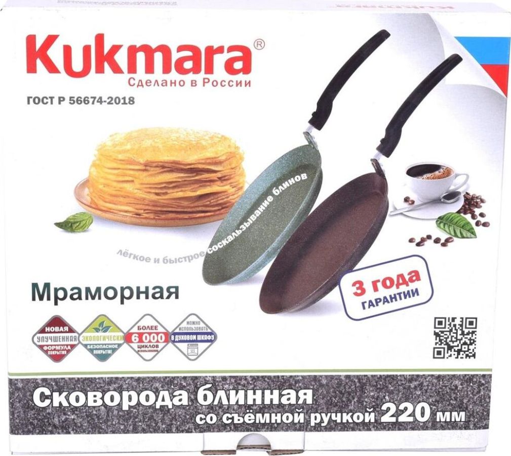 Комплектация: сковорода, съемная ручка , Антипригарное покрытие: мраморное