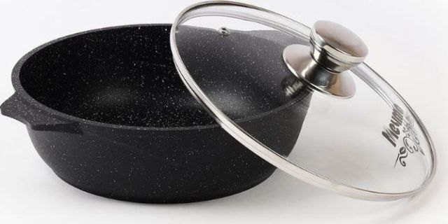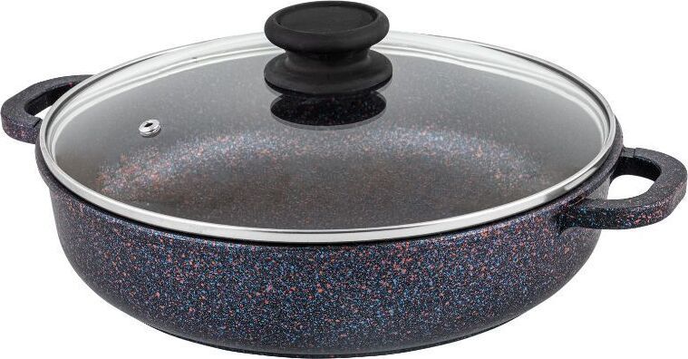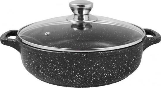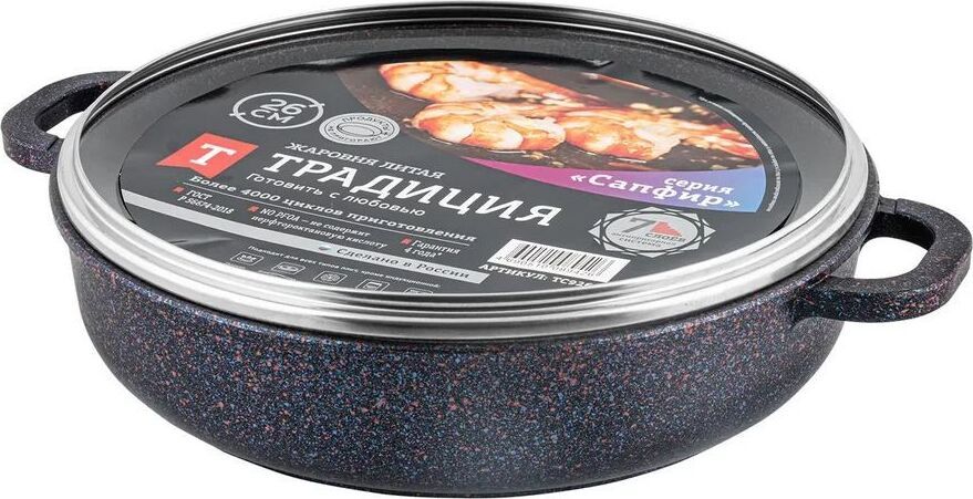 Жаровня а/пр литая 26см стекл/кр Сапфир ТМ Традиция, мраморное покрытие, изготовлена из литого алюминия толщина стенки- 4,0 мм; Толщина дна- 6 мм. Подходит для всех типов плит, кроме индукционных. Можно мыть в посудомоечной машине. Произведено в РОССИИ.