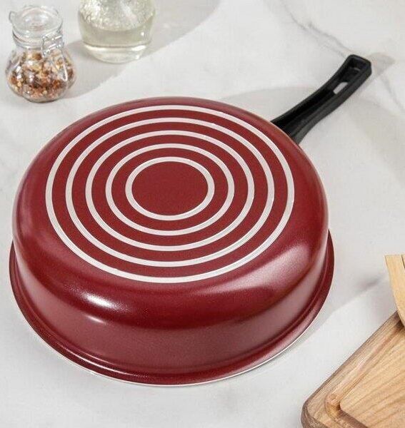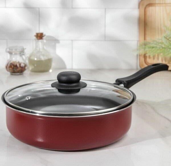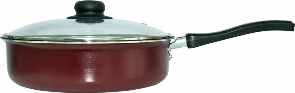 Сотейник Expert, диаметр 24см с антипригарным покрытием, со стеклянной крышкой. Крышка: Стекло с пароотводом и металлическим ободком. Материал: Штампованный алюминий. Цвет: Бордовый. Подходит для газовых плит, стеклокерамических плит и электроплит. Можно мыть в посудомоечной машине.