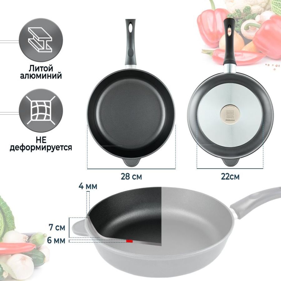 Комплектация: сковорода - 1 шт , Антипригарное покрытие: полимер-керамическое
