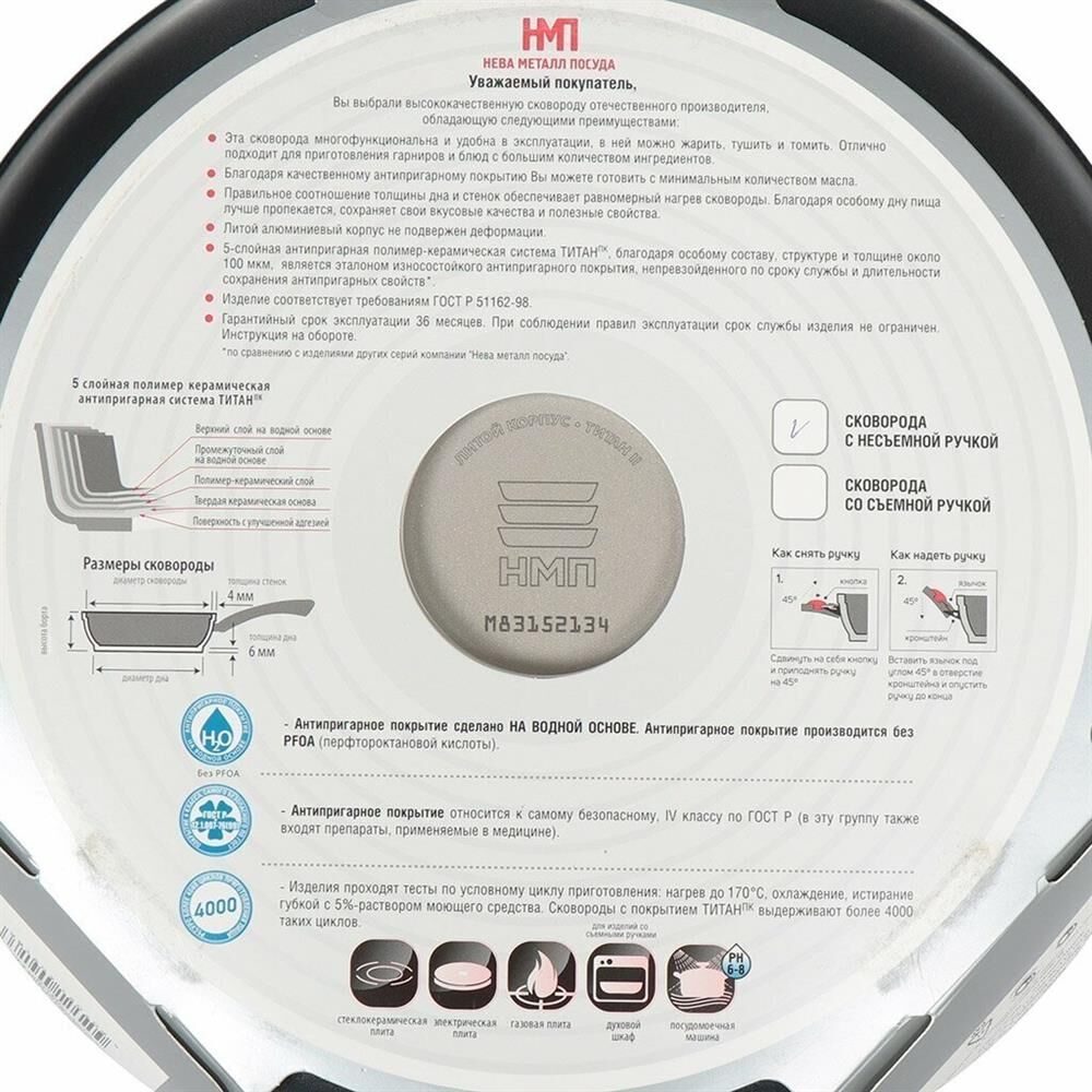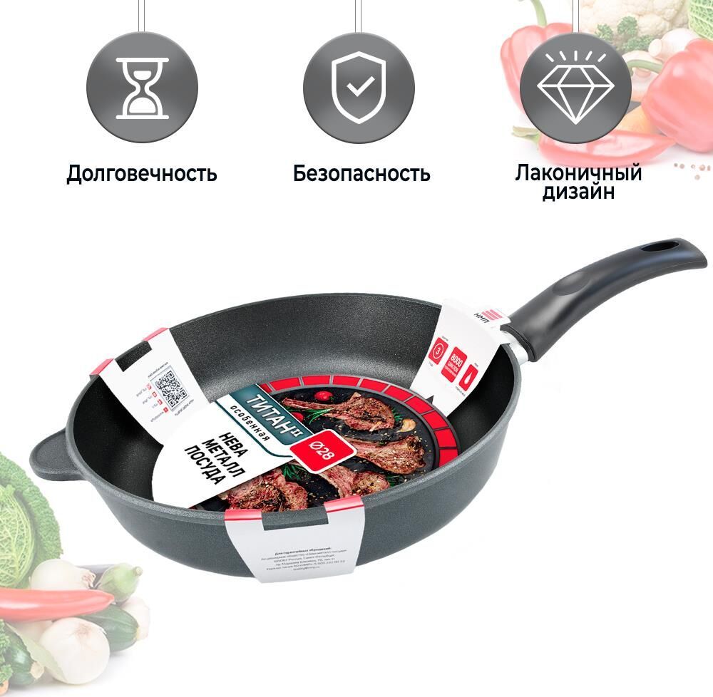 Тип покрытия Полимер-керамическое Диаметр изделия 28 см Диаметр дна 22 см Особенности Можно использовать в посудомоечной машине Толщина дна 0.6 см Толщина бортов 0.4 см Форма Круглая Материал Литой алюминий Тип посуды Универсальная сковорода Плита Газовая, Электрическая, Стеклокерамическая Высота бортов 70 мм Серия Титан Вес 1.49 кг