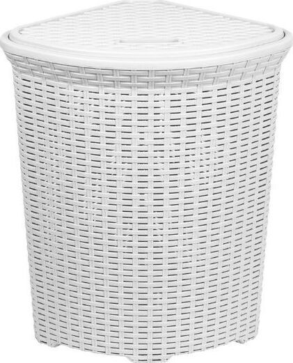 Емкость для накопления грязного белья перед стиркой. В объеме 60л комфортна для использования в семье на несколько человек. Форма корзины позволяет разместить ее в углу помещения для оптимального использования свободного пространства и экономии места. Крышка закроет содержимое от взглядов и послужит препятствием для распространения возможных посторонних запахов. Текстура с имитацией натурального плетения «Ротанг» привнесет уют в ваш интерьер и придаст индивидуальность.