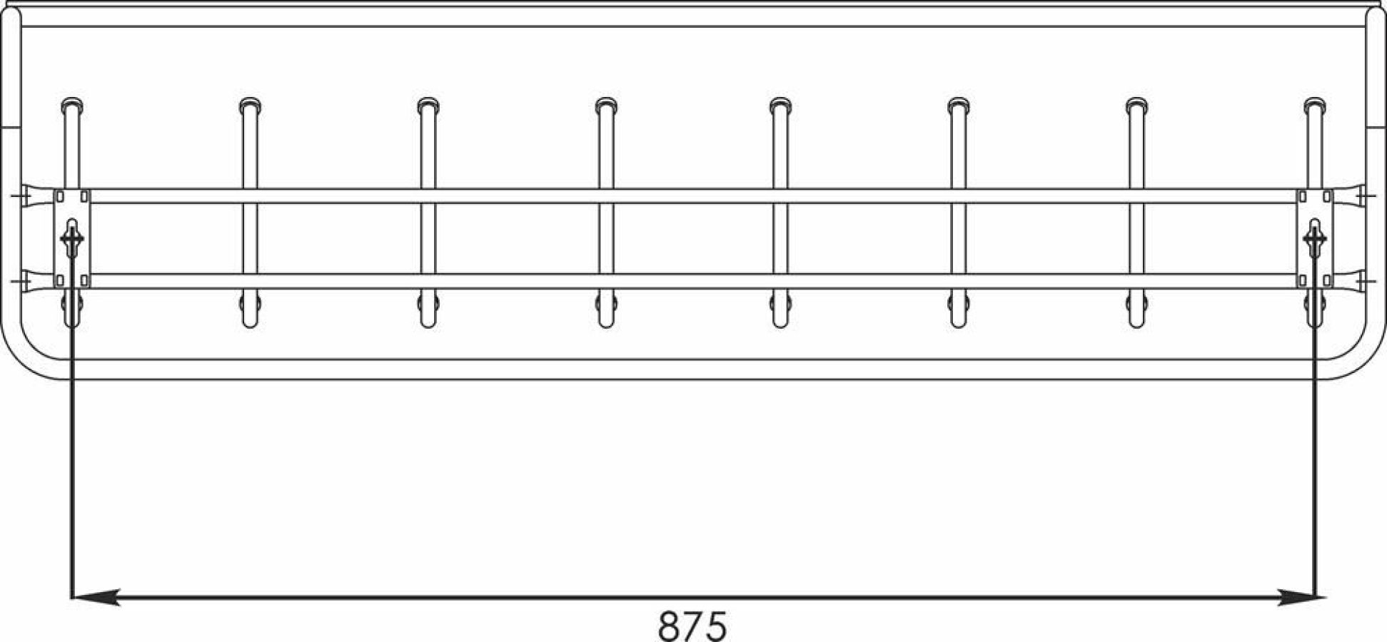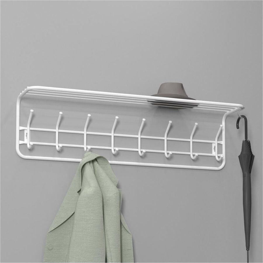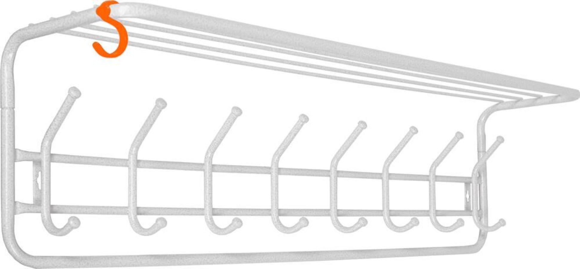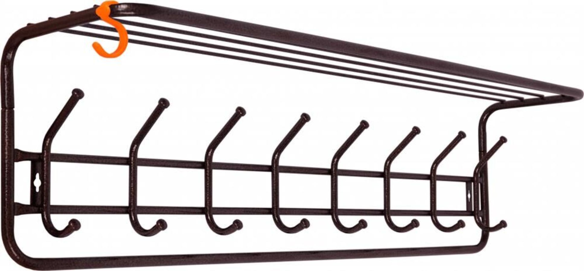 Надежная сборно-разборная конструкция. — компактная вешалка с 8-ю крючками. — удобная полка для хранения головных уборов. — допустимая нагрузка до 5 кг на крючок. — Удобный пластиковый крючок для мелочей. — Расстояние между крепёжными отверстиями 875 мм. Материал Сталь, полимерное покрытие. Габариты (Д*Ш*В) 98х22х26,5 см.