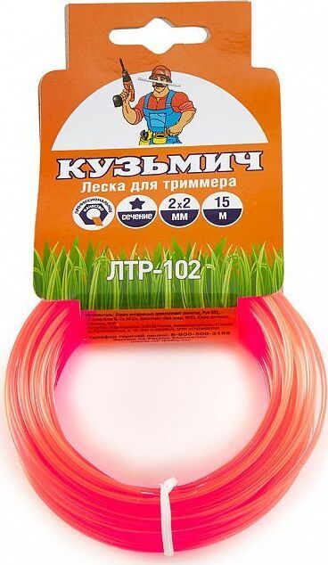 Размеры 2х2 мм. Длина 15 м. Материал: нейлон. Сечение: звезда. Цвет: оранжевый. Подходит для всех типов триммеров. Надежная, высокопрочная, износостойкая. Срок годности не ограничен. Использовать только для скашивания травы!