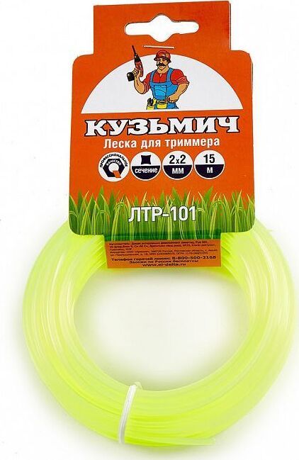 Размеры 2х2 мм. Длина 15 м. Материал: нейлон. Сечение: квадрат. Цвет: зеленый. Подходит для всех типов триммеров. Надежная, высокопрочная, износостойкая. Срок годности не ограничен. Использовать только для скашивания травы!