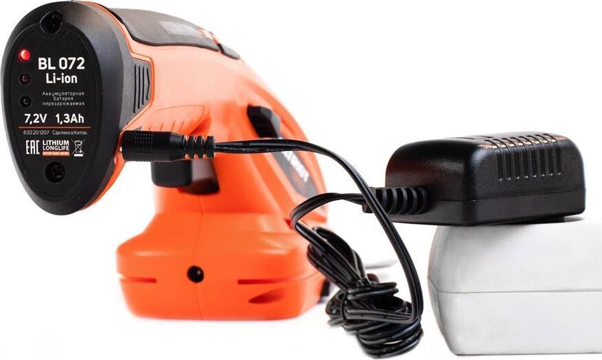 Макс. диаметр реза, мм 8 Ширина лезвия, мм 90 Длина лезвия, мм 170 Расстояние между ножами, мм 8 Частота вращения, об/мин 1100 Тип двигателя коллекторный Напряжение аккумулятора, В 7,2 Емкость аккумулятора, А*ч 2,0 Тип аккумулятора Li-ion Время работы на одном заряде до 35 минут Время зарядки аккумулятора до 1,5 часов Индикатор заряда аккумулятора есть Тип установки аккумулятора съемный Аккумулятор и ЗУ в комплекте один АКБ и ЗУ Блокировка случайного включения да Уровень шума при работе, дБ 91 Вес товара, кг без режущего элемента и аккумулятора 0,47
