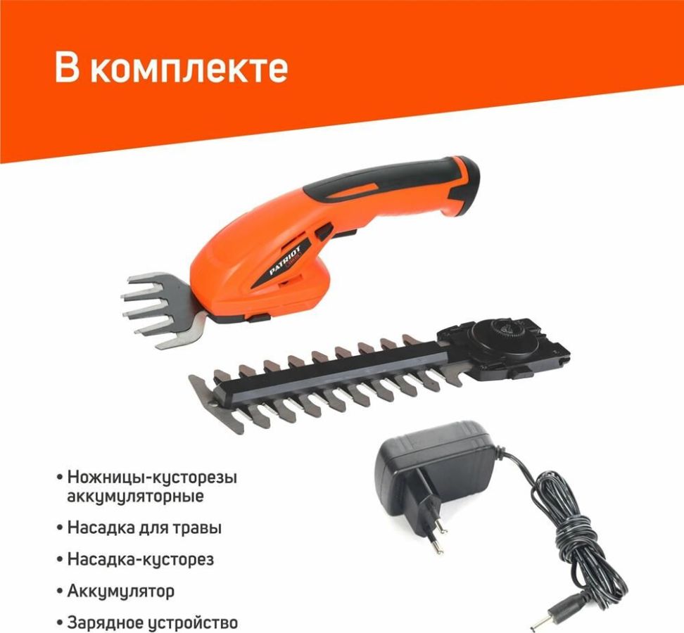 Комплектация: насадка для травы, насадка-кусторез, зарядное устройство , Тип аккумулятора: Li-Ion , Количество аккумуляторов в комплекте: 1