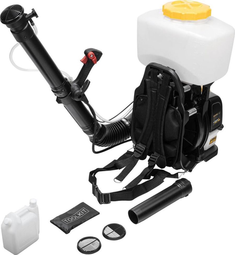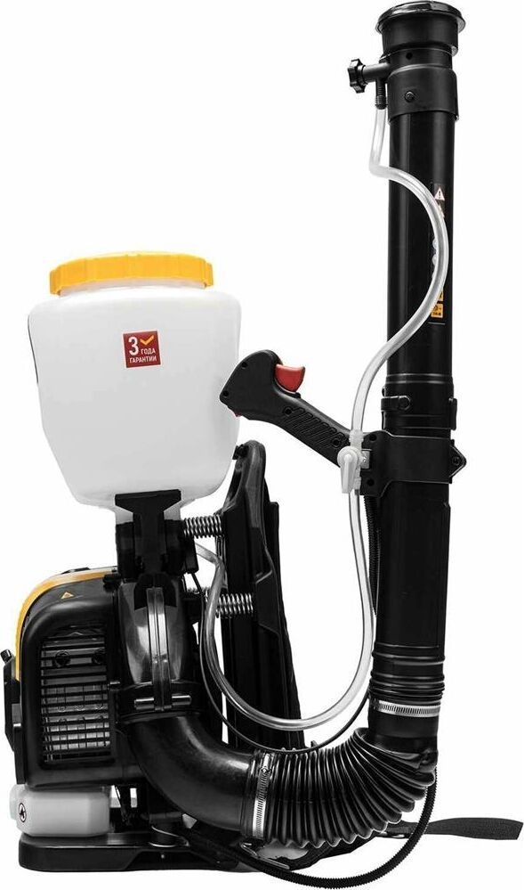Бензиновый опрыскиватель Denzel GS-63-PRO 65302 с двигателем объемом 63 см3 и баком на 25 л предназначен для распыления жидких, порошковых и гранулированных веществ. Используется для ухода за растениями: обработки от насекомых и вредителей, внесения подкормки, профилактики и лечения заболеваний. Двигатель мощностью 3,6 л.с. обеспечивает дальность распыления до 20 м, поэтому опрыскиватель подходит для обработки участков большой площади. Также он может работать в режиме воздуходувки, позволяя убирать с дорожек опавшую листву и свежевыпавший снег.ПреимуществаЭффективность специальные регуляторы позволяют настраивать напор подачи жидкости и концентрацию порошкового вещества в потоке.Уверенный старт ручной стартер и праймер подкачки топлива позволяют быстро запустить двигатель даже после долгого простоя.Настройка дальности распыления функция круиз-контроль позволяет регулировать обороты двигателя.Регулировка формы факела в комплект поставки входят дополнительные решетки.