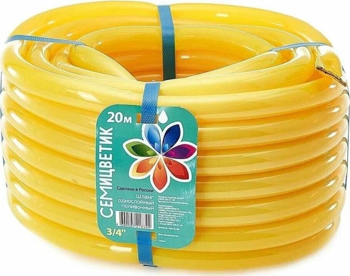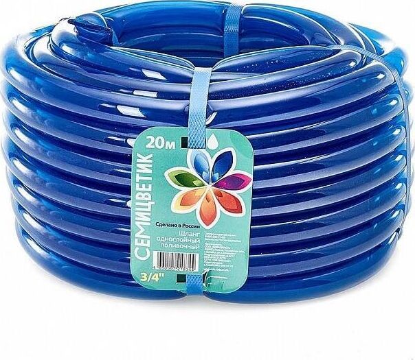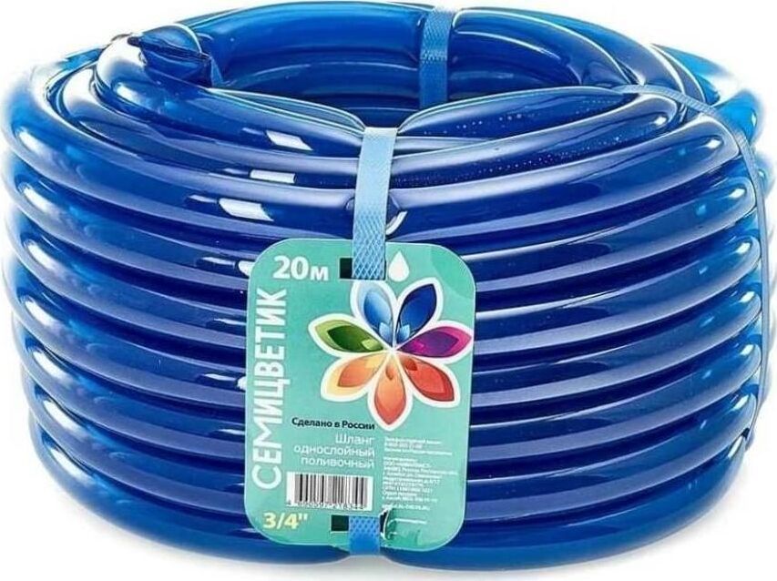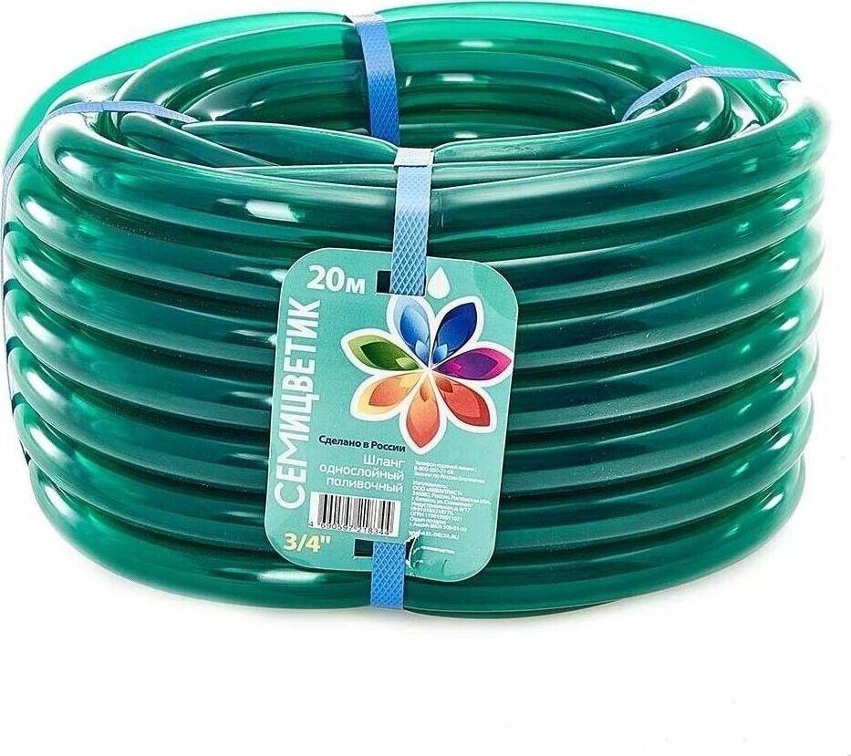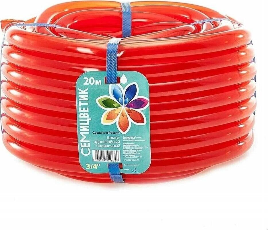 ГИДРОАГРЕГАТ Шланг поливочный Д=3/4" (20м) однослойный "СЕМИЦВЕТИК" цвет в ас-те