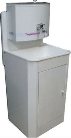 Дачный умывальник без ЭВН ТермМикс г. Миасс, бак пластиковый 17 литров, очень необходим на стройплощадках, дачах, гаражах, мастерских и других мест где нет водоснабжения и скважин. Тумба умывальника изготовлена из стали и окрашен термо и влагостойкой краской белого цвета. Толщина материла 0.7-0.9 мм. что придает заметную жесткость конструкции. Мойка из пластмассы - удобная, качественно сделана. Тумба поставляется в разобранном виде. Комплектация: Мойка из пластмассы- 1 шт. Боковина - 2 шт. Стяжка передняя - 2 шт. Стяжка задняя - 1 шт. Дверь - 1 шт. Кран, прокладка, слив, метизы - 1 комплект. Руководство по эксплуатации - 1 шт. Упаковка - 1 шт.