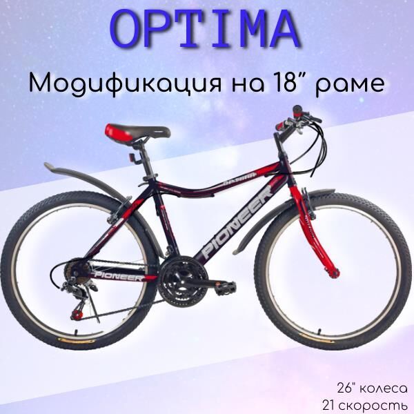 Размер колеса: 26"Назначение: ДЛЯ ВЗРОСЛЫХТип: ДОРОЖНЫЙРазмер рамы: 14" / 16" / 18"Материал рамы: стальКоличество скоростей: 21Серия переключателей скоростей: PIONEERВилка: жесткаяТормоза передние/задние: V-brake/V-brakeПокрышки: PIONEER
