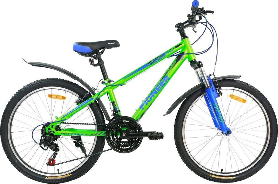 Размер колеса: 24"Назначение: ПОДРОСТКОВЫЕТип: ГОРНЫЙРазмер рамы: 12"Материал рамы: стальКоличество скоростей: 21Серия переключателей скоростей: PIONEERВилка: амортизирующая, GOODТормоза передние/задние: V-brake/V-brakeПокрышки: PIONEER, 24"x2,125",матовая краска