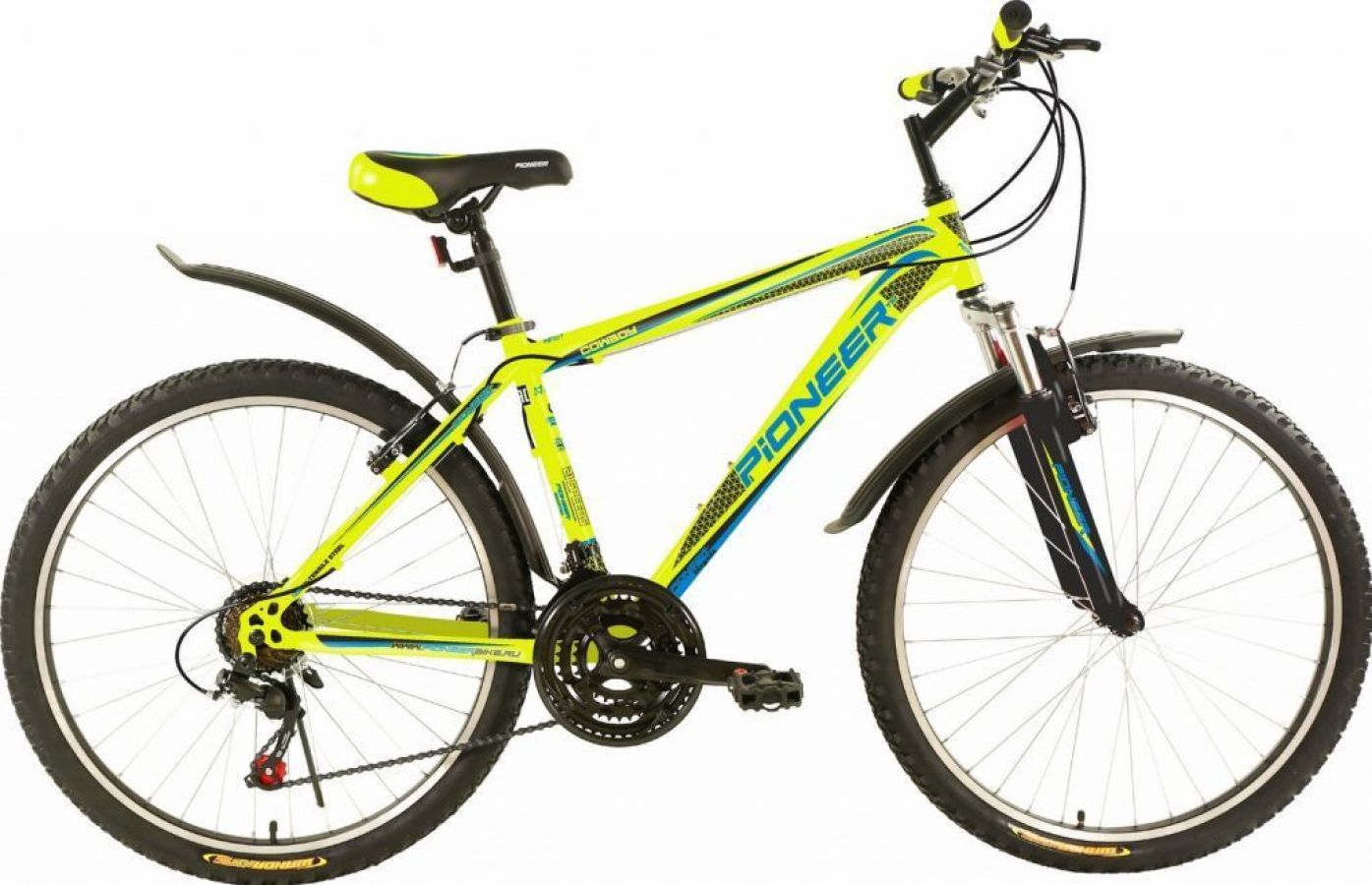 Размер колеса: 26".Назначение: ДЛЯ ВЗРОСЛЫХ.Тип: ГОРНЫЙ.Размер рамы: 16".Материал рамы: сталь.Количество скоростей: 21.Серия переключателей скоростей: PIONEER.Вилка: Амортизирующая, GOODТормоза передние/задние: V-brake/V-brakeПокрышки: PIONEER
