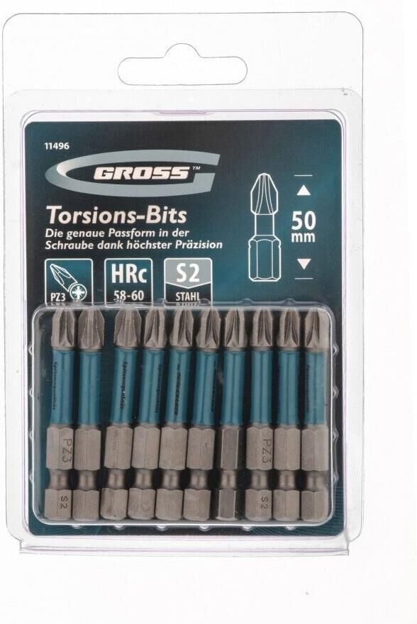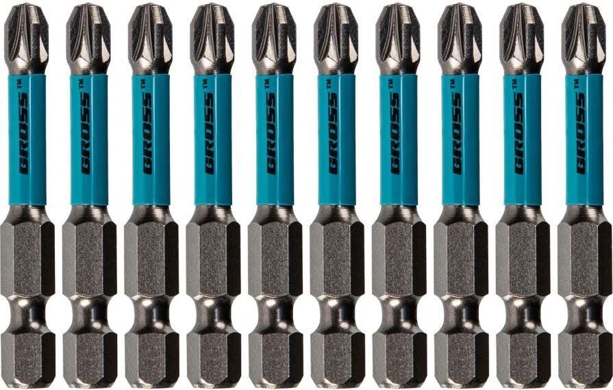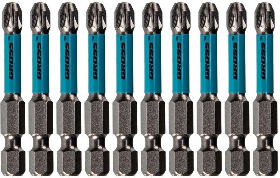 Набор торсионных бит PZ3 x 50 мм Gross 11496, 10 шт., предназначен для монтажа и демонтажа резьбовых соединений с помощью ударного шуруповерта. Он незаменим в строительных, слесарных и монтажных работах, в автосервисах, при проведении ремонта в доме. Торсионная зона способна пружинить, за счет чего она частично амортизирует тангенциальный удар от шуруповерта. Такое решение позволяет равномерно распределить нагрузку по бите и избежать поломки шлица.ПреимуществаДополнительные выступы между гранями — риск выскальзывания шлица из головки крепежа и поломки сведен к минимуму.Продуманная конструкция — торсионная зона позволяет работать ударным шуруповертом даже с особо твердыми поверхностями без риска поломки бит.Высококачественный материал изготовления — японская легированная сталь S2 обеспечивает устойчивость бит к износу и увеличивает их ресурс.Износостойкость — биты закалены до твердости 58-60 HRC, что повышает сопротивляемость к деформации.Надежная фиксация насадок — шлицы бит намагничены, поэтому крепеж не выпадет, а мастер сможет свободной рукой придерживать закрепляемый материал.Защита от подделок — синее кольцо с логотипом ТМ Gross подтверждает оригинальность товара.Удобное хранение — насадки поставляются в блистере с европодвесом, который можно вешать на стенд.10 бит в комплекте — набора хватит на небольшую производственную бригаду.