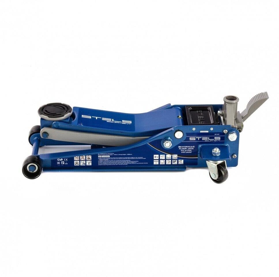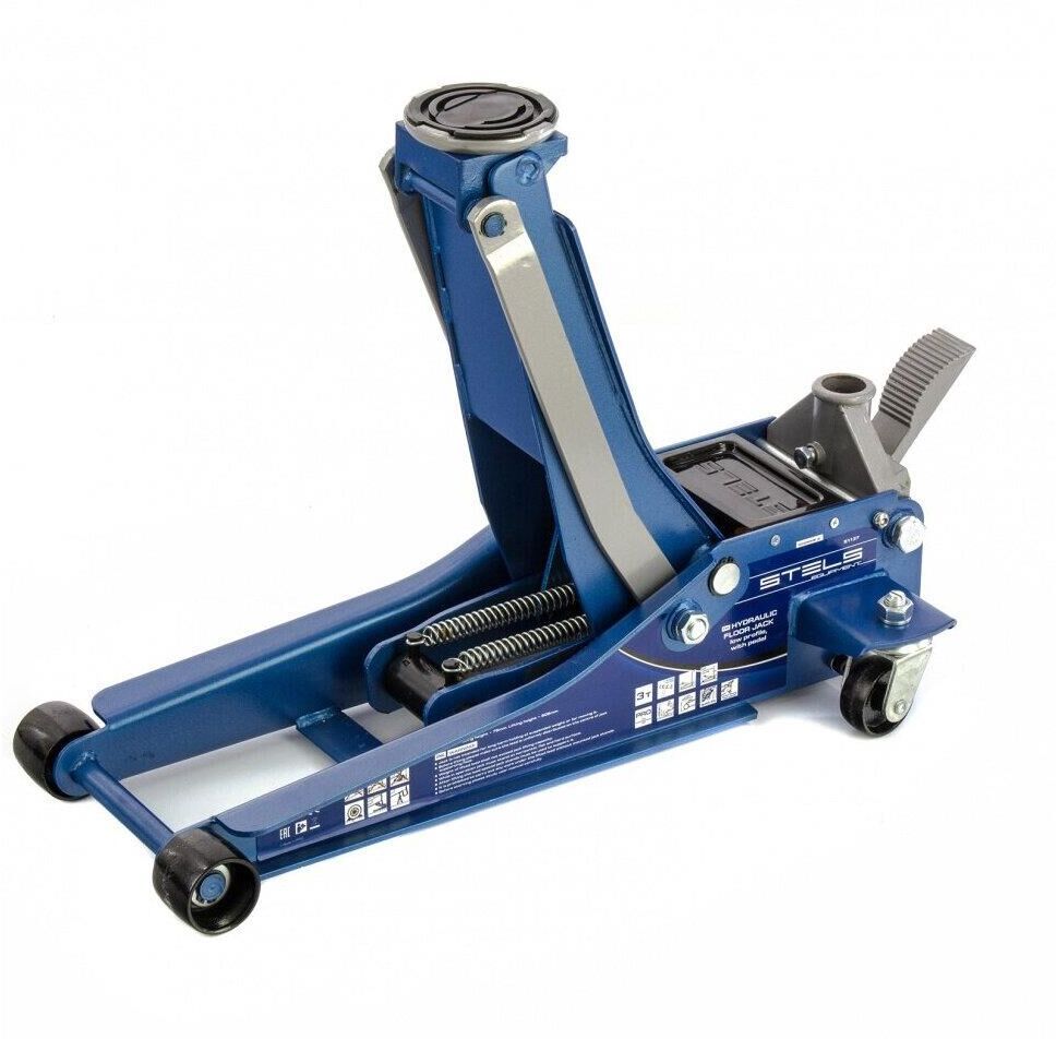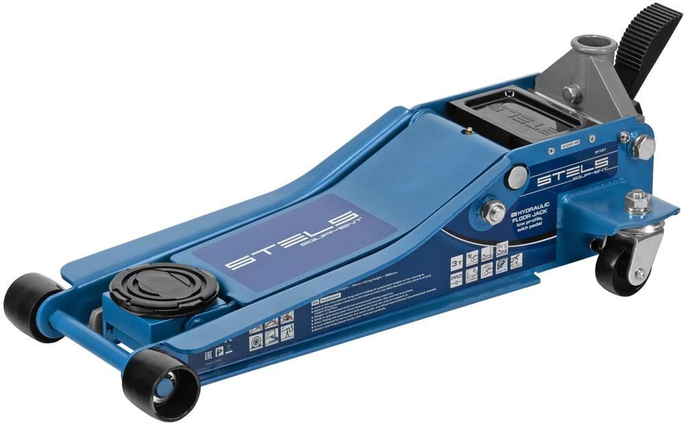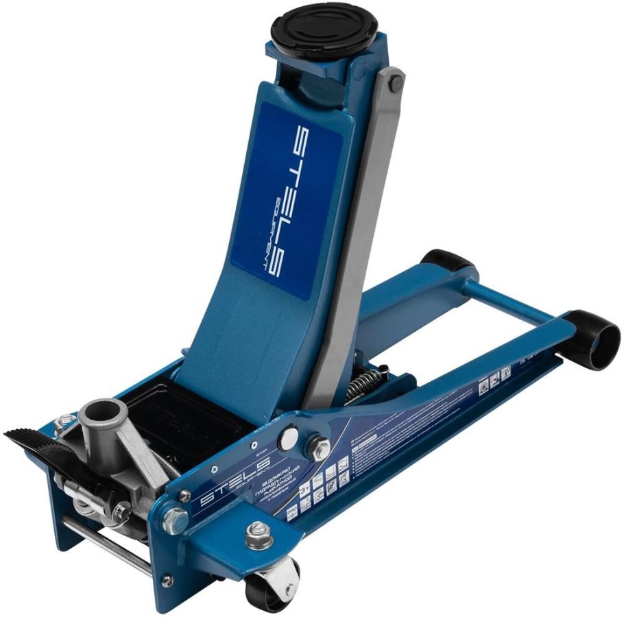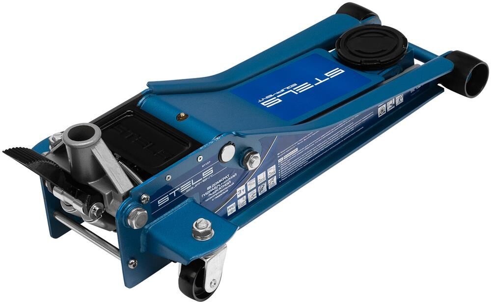 Профессиональный подкатной гидравлический домкрат Stels LOW PROFILE QUICK LIFT 51136 используется для быстрого подъема на высоту 75-515 мм всех типов автомобилей со сверхнизким клиренсом и массой до 3 тонн. Благодаря системе QUICK LIFT для достижения предельной высоты достаточно 12 качков рукоятки. Домкрат подходит для использования на станциях техобслуживания и шиномонтажа.Преимущества Аккуратная работа — резиновая опора и прорезиненная ручка защищают кузов автомобиля и корпус домкрата от повреждений. Надежная конструкция — карданная передача обеспечивает долговечность домкрата, двухплунжерный насос сохраняет работоспособность даже при выходе из строя одного из плунжеров — домкрат будет работать за счет второго. Защита от перегрузок — предохранительный клапан не позволяет поднимать грузы тяжелее 3 тонн. Долговечность — хромированные штоки и резиновые сальники устойчивы к износу, масленка для смазывания оси лапы позволяет продлить срок службы домкрата. Дополнительные возможности — в специальный лоток для мелк