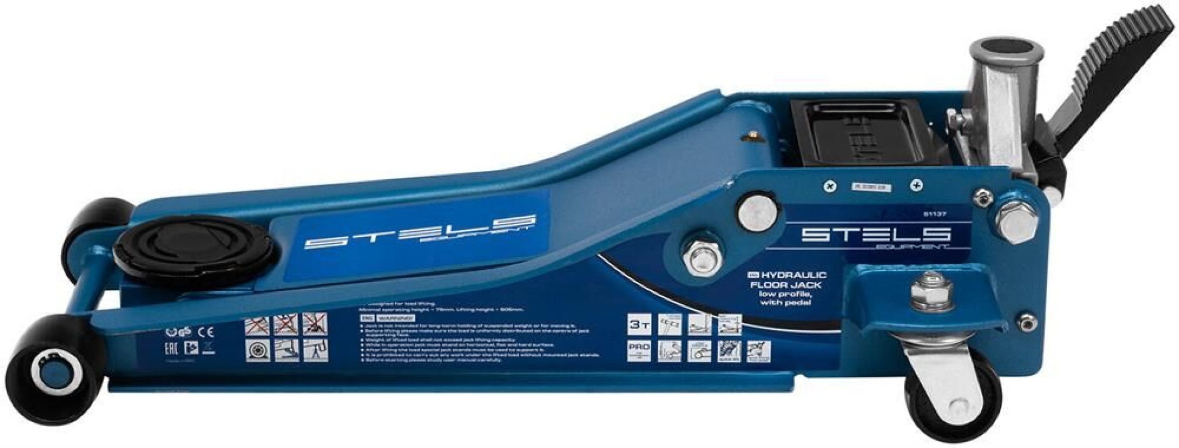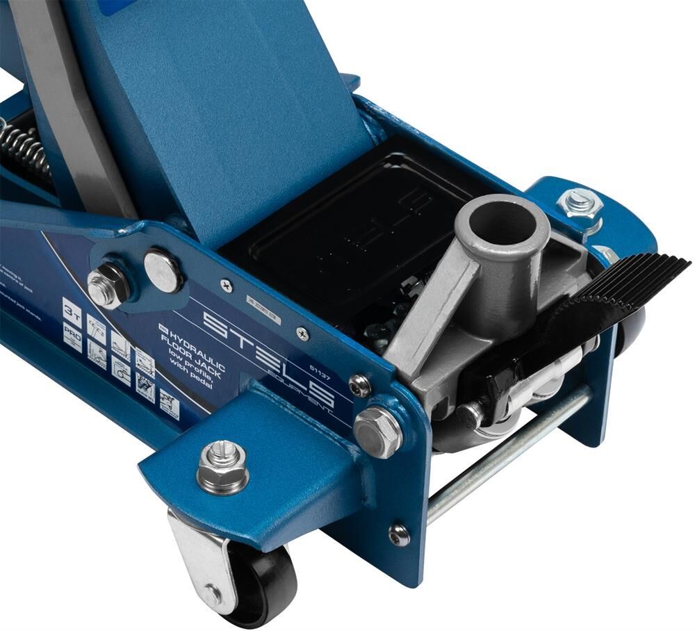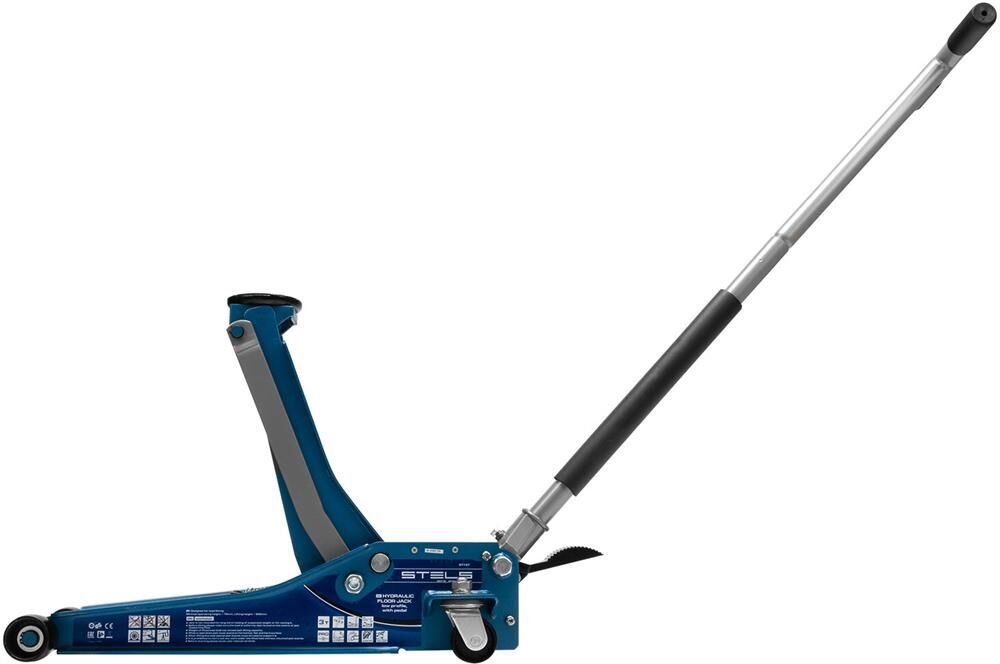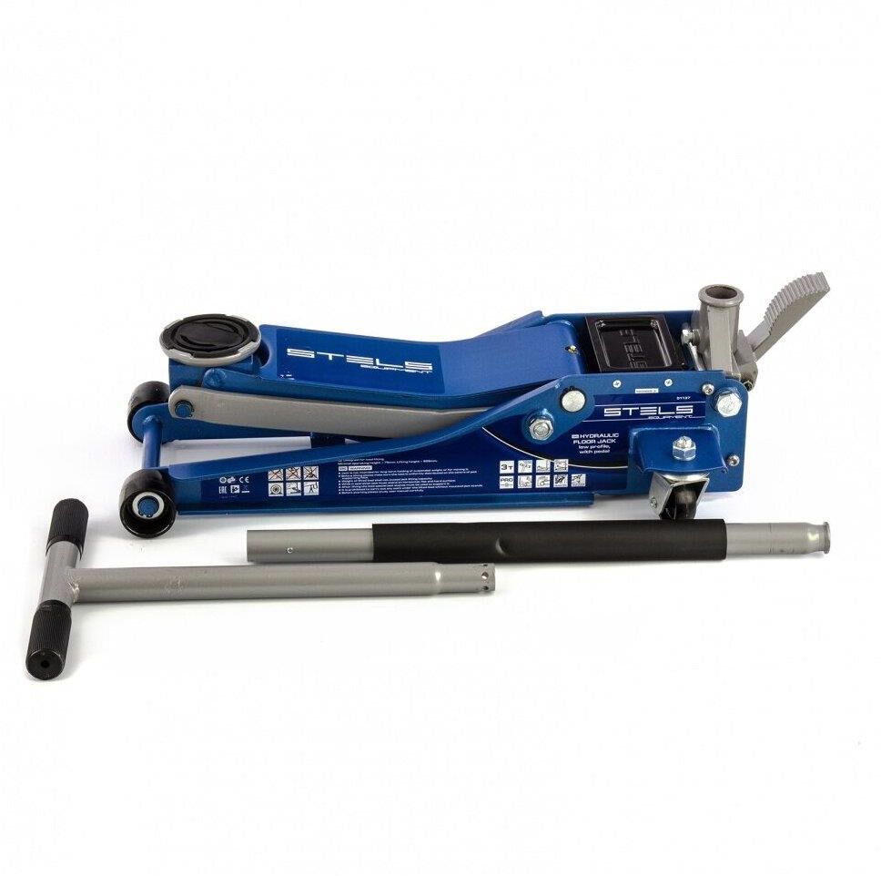 Профессиональный подкатной гидравлический домкрат Stels LOW PROFILE QUICK LIFT 51136 используется для быстрого подъема на высоту 75-515 мм всех типов автомобилей со сверхнизким клиренсом и массой до 3 тонн. Благодаря системе QUICK LIFT для достижения предельной высоты достаточно 12 качков рукоятки. Домкрат подходит для использования на станциях техобслуживания и шиномонтажа.Преимущества Аккуратная работа — резиновая опора и прорезиненная ручка защищают кузов автомобиля и корпус домкрата от повреждений. Надежная конструкция — карданная передача обеспечивает долговечность домкрата, двухплунжерный насос сохраняет работоспособность даже при выходе из строя одного из плунжеров — домкрат будет работать за счет второго. Защита от перегрузок — предохранительный клапан не позволяет поднимать грузы тяжелее 3 тонн. Долговечность — хромированные штоки и резиновые сальники устойчивы к износу, масленка для смазывания оси лапы позволяет продлить срок службы домкрата. Дополнительные возможности — в специальный лоток для мелк