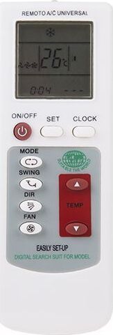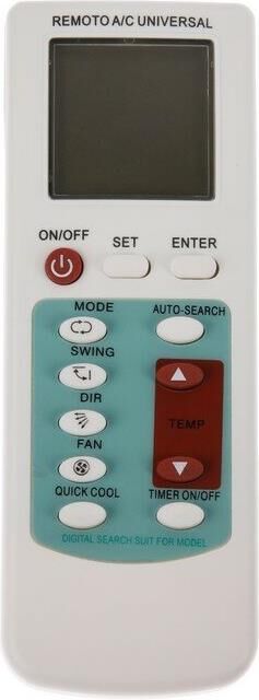 Пульт универсальный для кондиционеров, подходит к более 1000 моделей кондиционеров различных кондиционеров. Совместим со следующими моделями: GREE , CARRLE, MIDEA, TOSHIBA, LANBO, CHANGHONG, FRESTECH, CHIGO, MACQUAY, PANASONIC, HUIFENG, HAIER, NANF, MITSUBISHI, DAYU, ALANZ,SAST, KELONG,HUABAO, SHENGFENG AUX , YAIR, SHARP,SHENGBAO, WANBO, DAIKIN, POLKA, HISENSE, TIANYUAN, FUSHITONG, TOBO, HUALING, FEILU, LG. XIAOYA, HITACHI, DEER, TCL, LIANGYU, SANYO, LITTLE SWAN, WHIRPOOL, SUOWA ROWA , LANGGE, ELECTROLUX, CROWN, YORK, ZHONGLI, AUOMA, TALANDI, CHUNLAN, WUFFENG XINKE ,SAMSUNG и др.