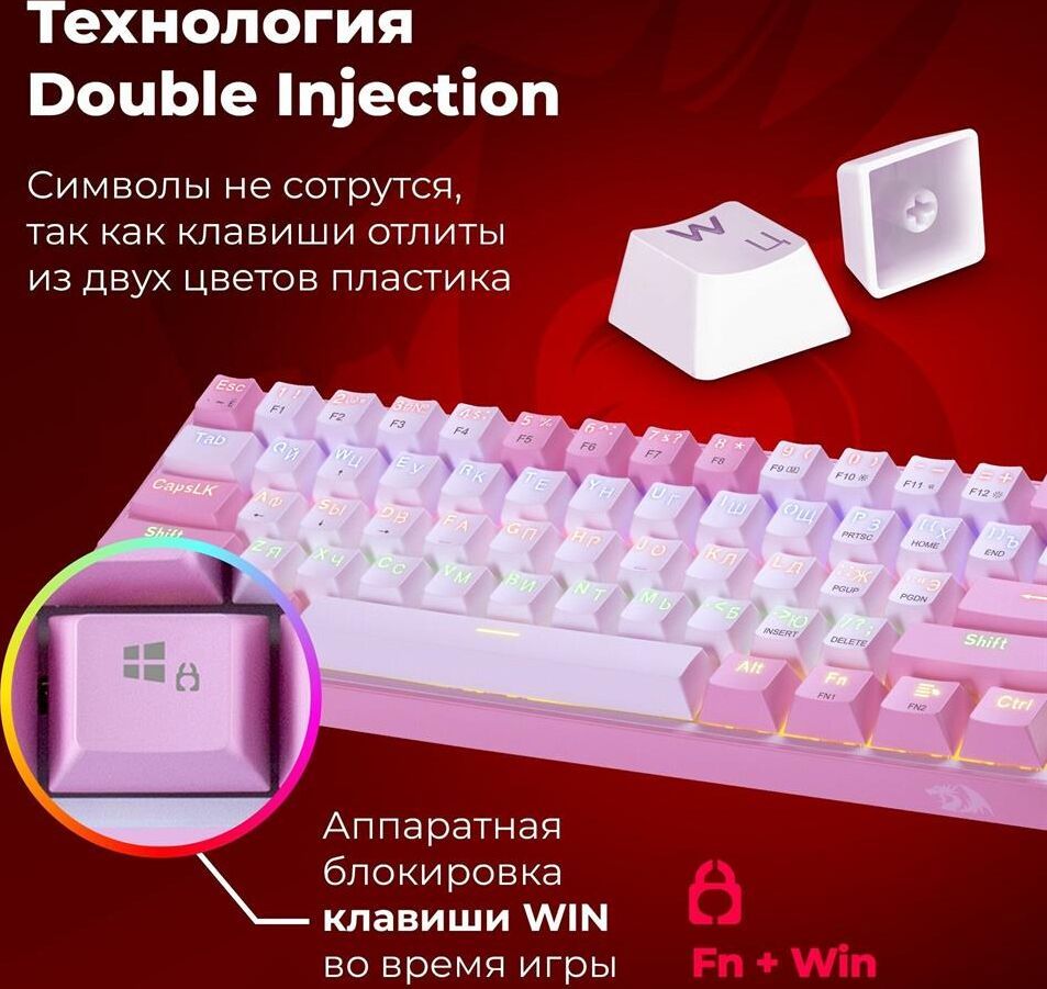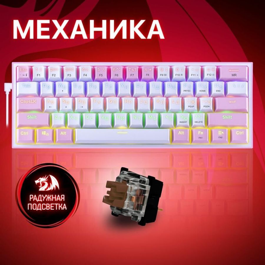 Повышенная износостойкость Позолоченный USB-коннектор - Позолоченное напыление обеспечивает лучшую проводимость, меньшее сопротивление и окисляемость Радужная подсветка Технология Hot Swap Влагоустойчивая конструкция клавиатуры Тихий ход клавиш обеспечивает практически бесшумную работу