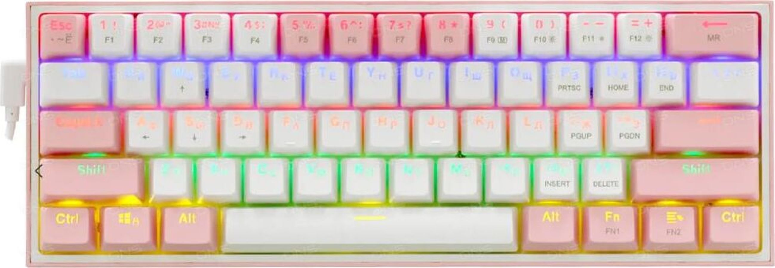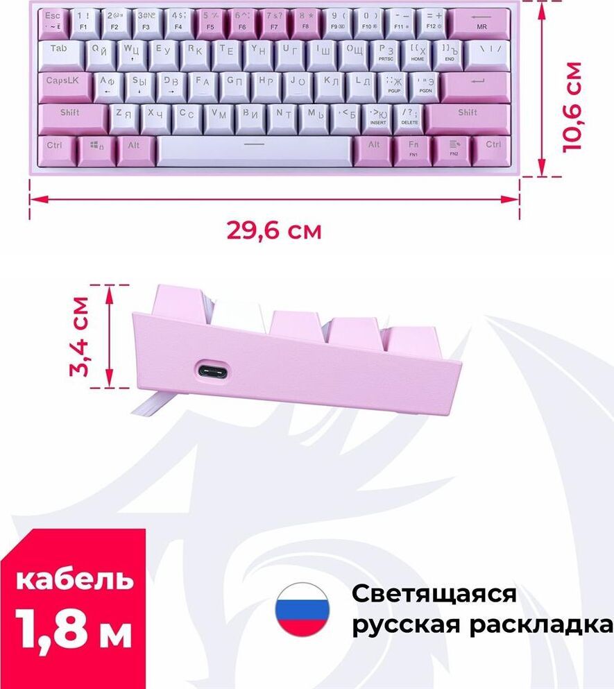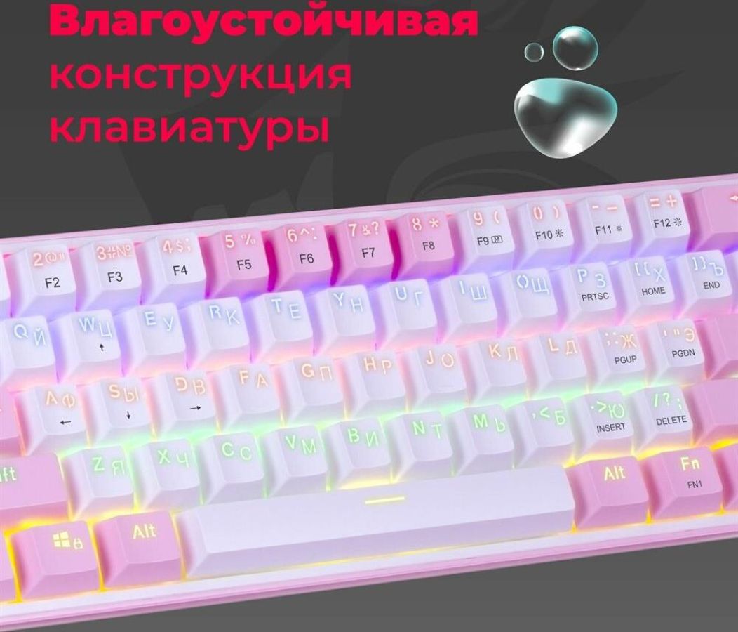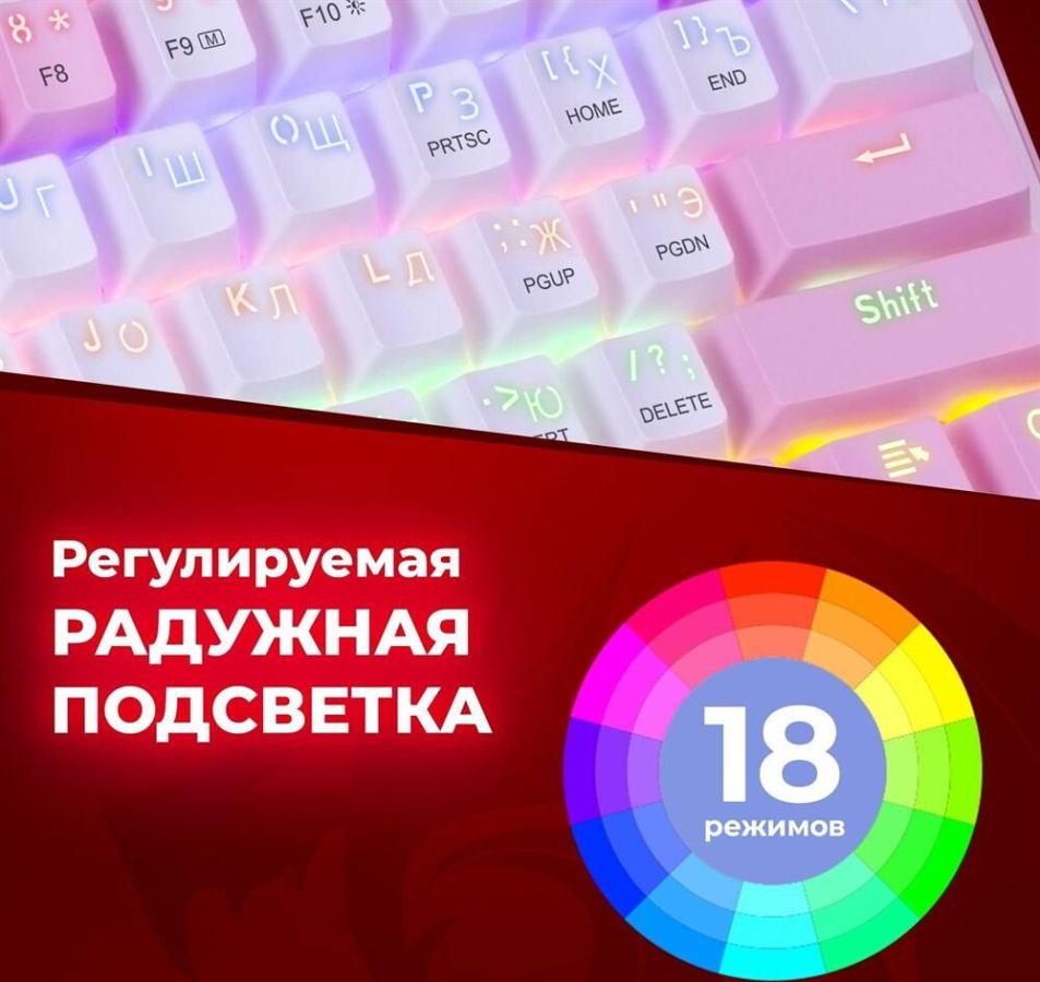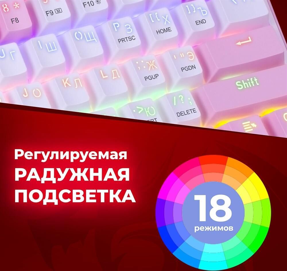 Комплектация: Клавиатура, упаковка , Подсветка: радужная подсветка, подсветка клавиш , Раскладка клавиатуры: русская