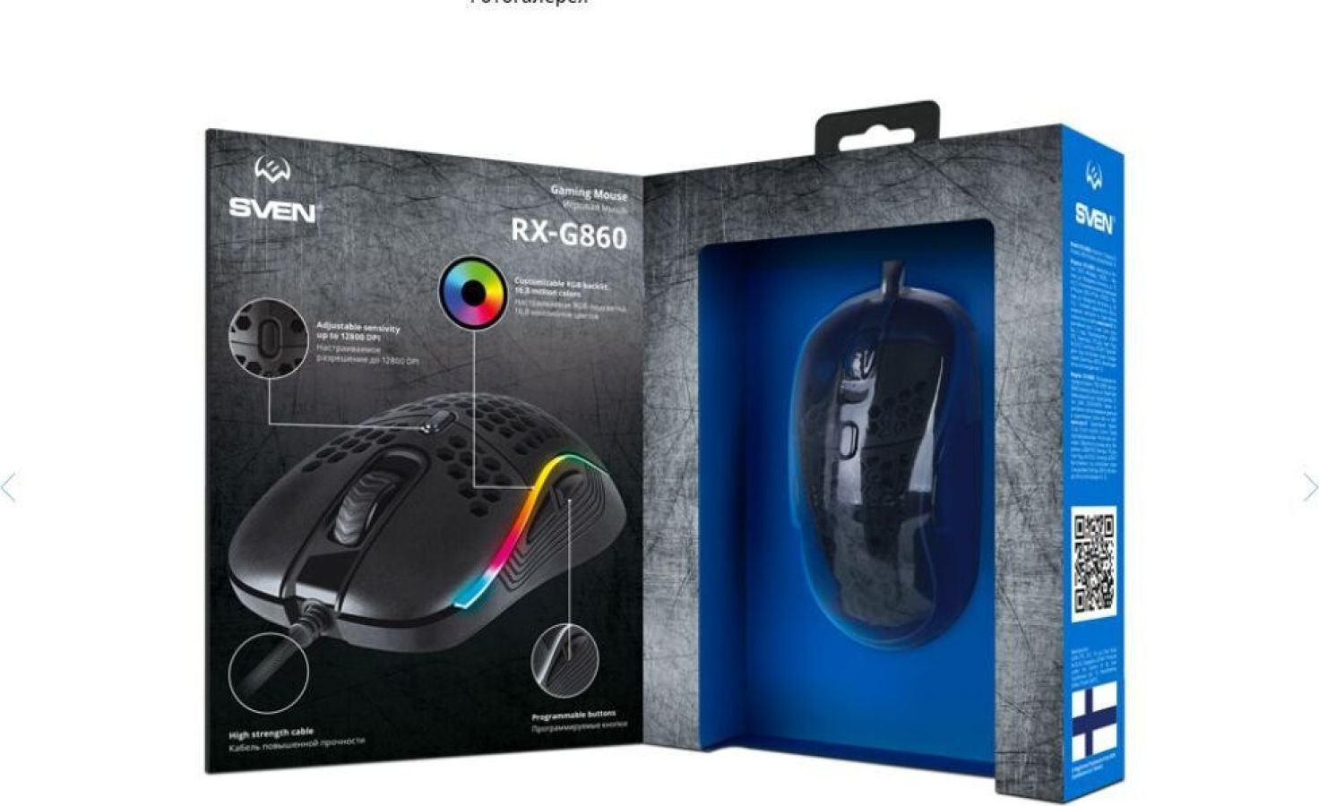 SVEN RX-G860 Программируемая игровая мышь Программируемые кнопки с возможностью настройки макросов Максимальное разрешение 12800 DPI Синхронизация подсветки со звуковыми эффектами на ПК Кнопка переключения DPI Боковые кнопки c двух сторон Настраиваемая RGB-подсветка 16,8 миллионов цветов Тип мыши оптическая Совместимость c OC Windows Количество кнопок, шт 7 + 1 (колесо прокрутки) Колесо прокрутки есть Разрешающая способность, DPI 200 — 12800 Интерфейс USB Наработка на отказ, нажатий свыше 20 000 000 Соответствие стандартам FCC, CE, ЕАС Длина кабеля, м 1,8 Размеры изделия (Ш × В × Г), мм 126 × 66,5 × 39 Вес, г 116 Цвет черный
