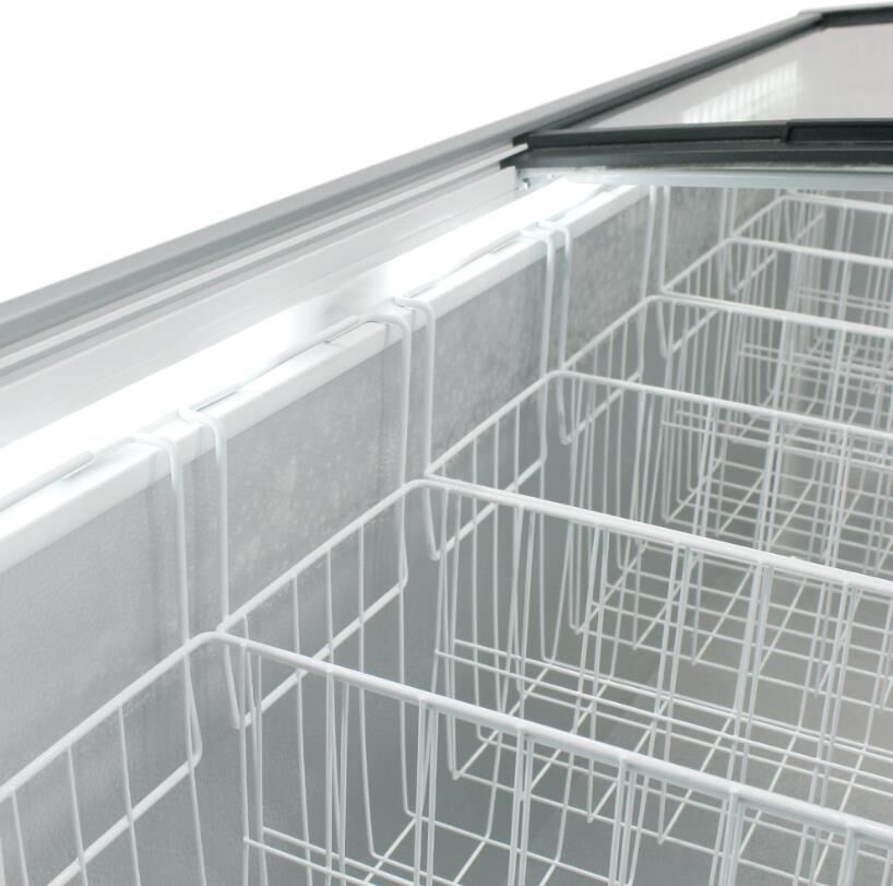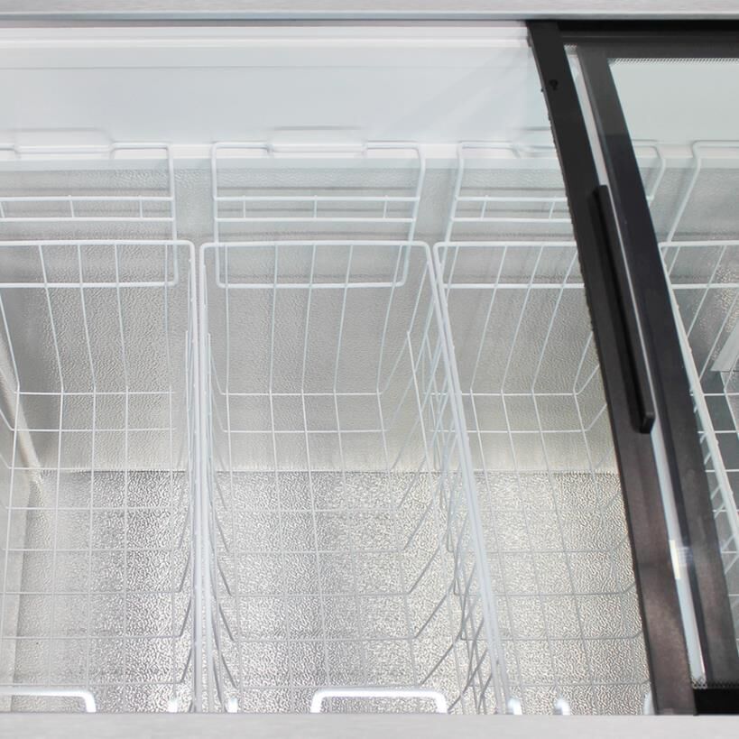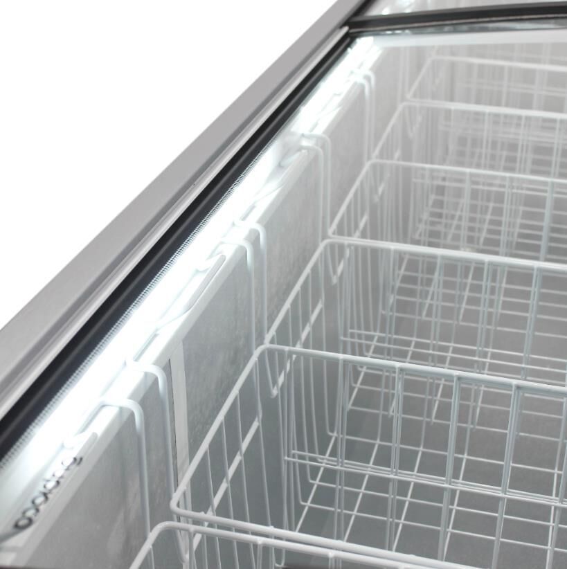Морозильный ларь с гнутыми раздвижными стеклами; Габариты ВхШхГ, см: 88,5х202,5х66,5; Тип двери/крышки: Стеклянная; Минимальная температура в морозильной камере: -25 °C; Количество корзин: 8; Управление: Механическое; Инверторный компрессор; Общий объем: 680 л; Общий полезный объем: 680 л; Режим "Быстрая заморозка"; Суточный расход электроэнергии, при температуре окружающего воздуха 24°C: 2.4 кВтч; Температура хранения: От -18 до -25°C; Размораживание морозильной камеры: ручное; Климатический класс: 5 (+40°С; 40%); Количество компрессоров: 1; Максимальный уровень шума: 55 дБ