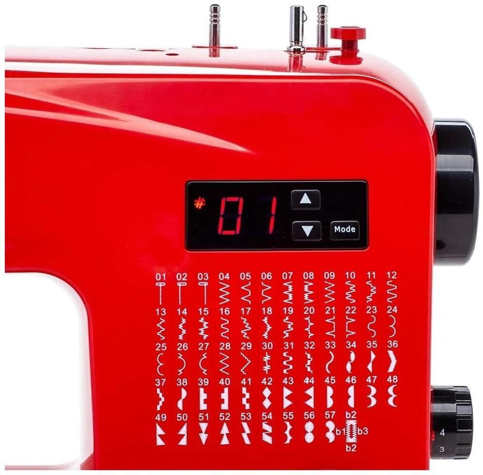 Автоматическая намотка шпульки; Нитевдеватель; Виды петель: бельевая; Выполнение петель: полуавтоматически; Кол-во выполняемых петель: 1; Количество операций: 57; Максимальная высота подъема лапки: 9 мм; Максимальная длина стежка: 4 мм; Максимальная скорость шитья: 400 ст/мин; Максимальная ширина стежка: 5 мм; Нижний транспортер: 3; Освещение рабочей поверхности: лампа накаливания; Поле шитья: стандартное; Потребляемая мощность: 40 Вт; Регулировка скорости на корпусе; Стандарт игл: 130/705H; Съемная рукавная платформа; Тип машины: электронная; Тип смазки: графитовая; Тип челнока: вертикальный качающийся; Устройство обрезки нити: ручное; Шитье двойной иглой; Прошиваемые материалы: легкие, средние