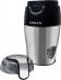 Номинальная мощность: 150 Вт; Максимальная мощность двигателя: 500 Вт; Защита от перегрева; Вместимость: 50 г; Материал корпуса: нержавеющая сталь / пластик; Материал ножей и чаши: нержавеющая сталь; Съемная защитная крышка; Защита от включения при открытой крышке; Отсек для хранения электрошнура; Длина электрошнура: 1 м