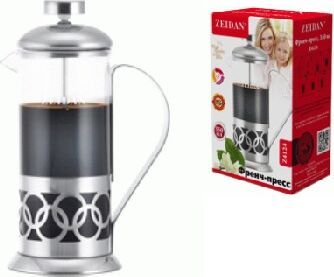 Тип френч-пресс. Объем 0,35 л. Материал колбы стекло. Материал корпуса нержавеющая сталь. Материал ручки нержавеющая сталь. Цвет серебристый. Фильтр. Крышка.