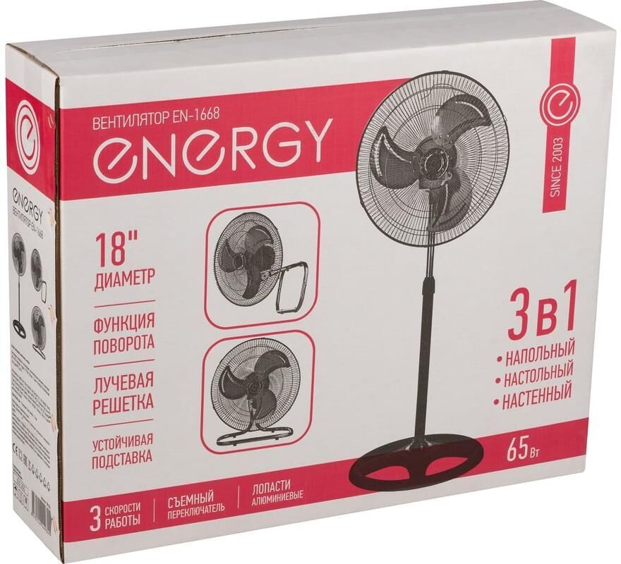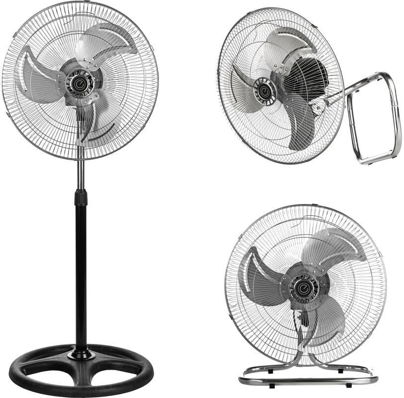 3 в 1 (напольный, настольный, настенный) Диаметр 18'' Высота 130 см Диаметр подставки 50 см 3 скорости работы Функция поворота Алюминиевые лопасти Лучевая решетка Устойчивая подставка Мощность 65 Вт