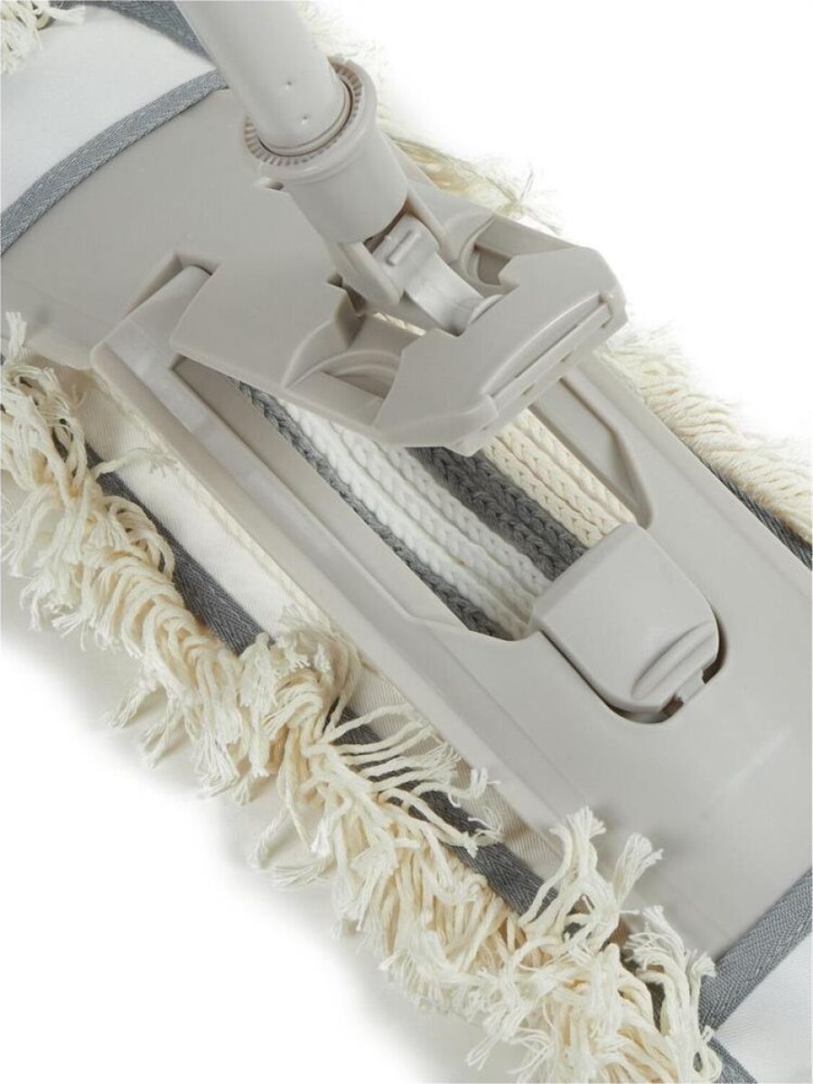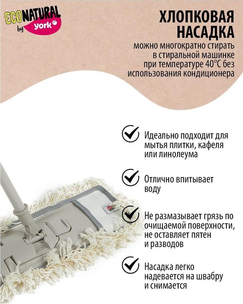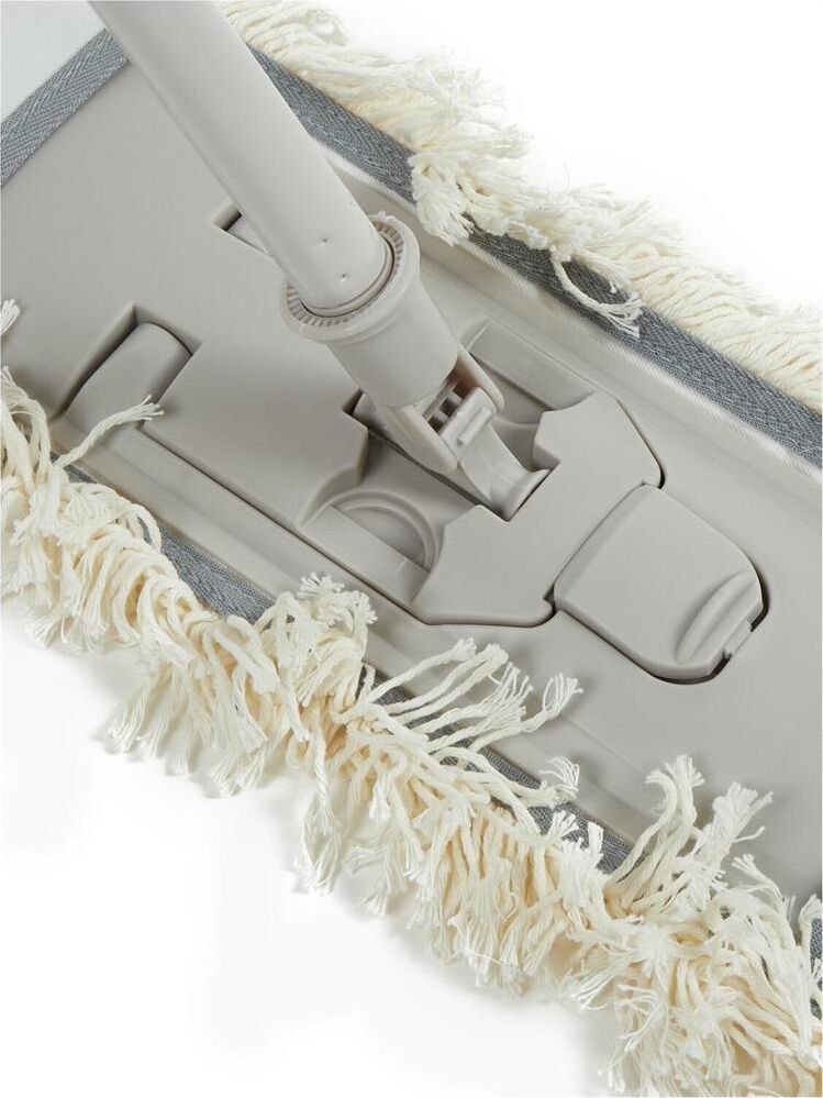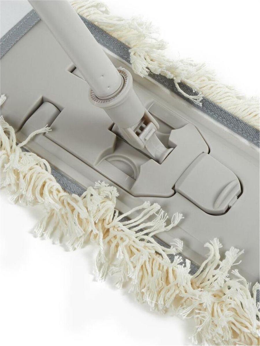 Современный дизайн и эффективность в использовании! Экологически чистый продукт: насадка для швабры изготовлена из переработанного хлопка, платформа – из вторично-переработанного пластика, рукоятка - из стали. Большой размер насадки позволяет быстрее и эффективнее вымыть пол. Для использования «в сухом» виде - для сбора пыли и ворсинок или «во влажном» виде – для мытья пола. Насадка легко надевается на швабру и снимается.