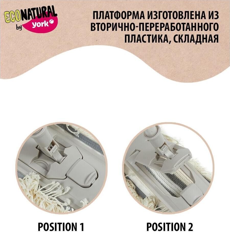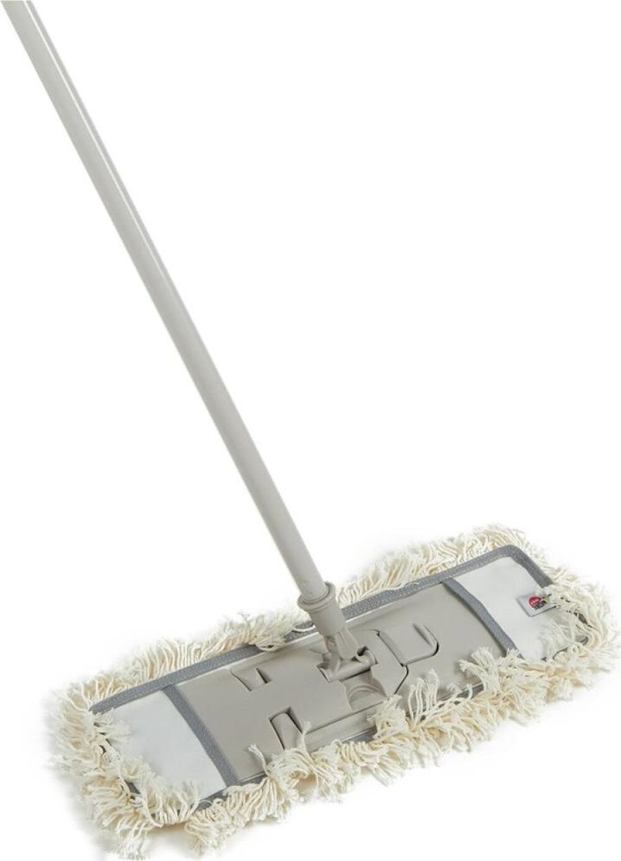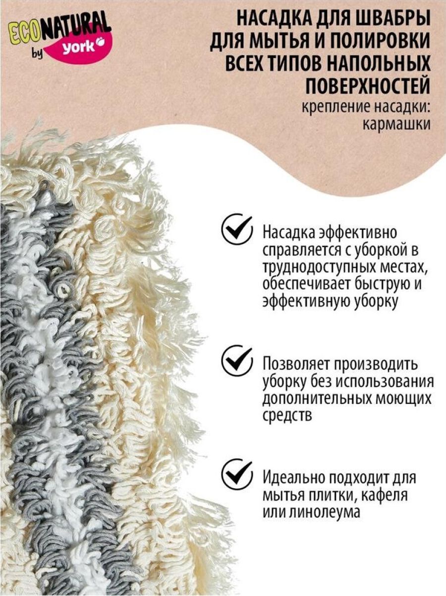 Современный дизайн и эффективность в использовании! Экологически чистый продукт: насадка для швабры изготовлена из переработанного хлопка, платформа – из вторично-переработанного пластика, рукоятка - из стали. Большой размер насадки позволяет быстрее и эффективнее вымыть пол. Для использования «в сухом» виде - для сбора пыли и ворсинок или «во влажном» виде – для мытья пола. Насадка легко надевается на швабру и снимается.