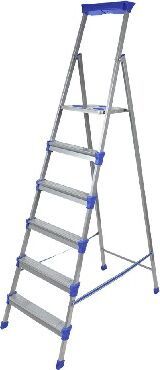 Стремянка металлическая 6 ступеней, высота до рабочей площадки 1285мм, ширина ступени 65мм, многофункциональный лоток для инструментов, страховочная лента, максимальная нагрузка 120кг