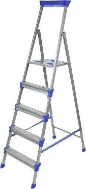 Стремянка металлическая 5 ступеней, высота до рабочей площадки 1065мм, ширина ступени 65мм, многофункциональный лоток для инструментов, страховочная лента, максимальная нагрузка 150кг
