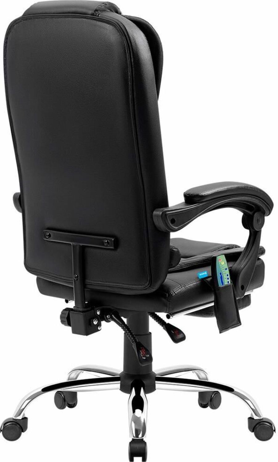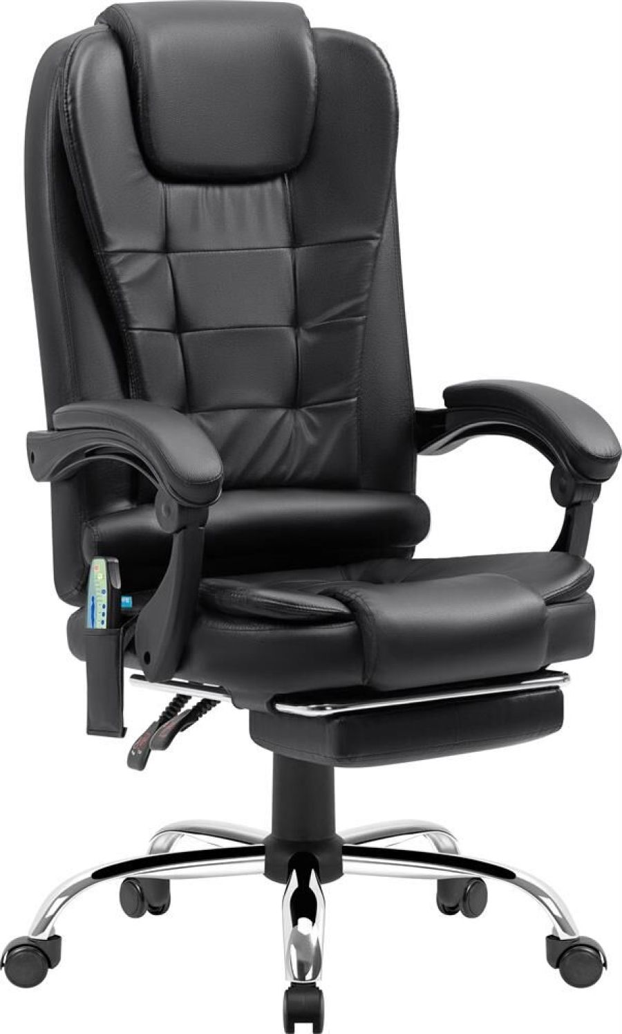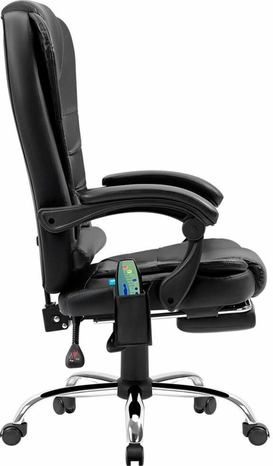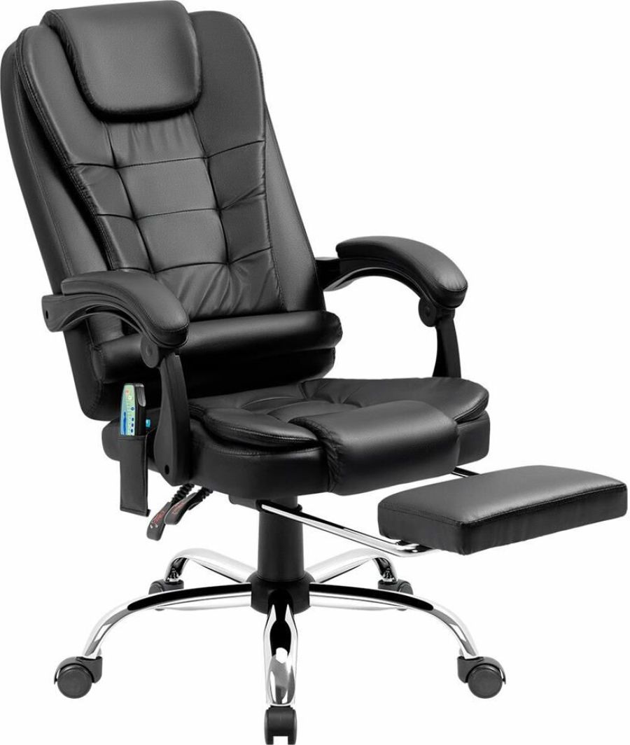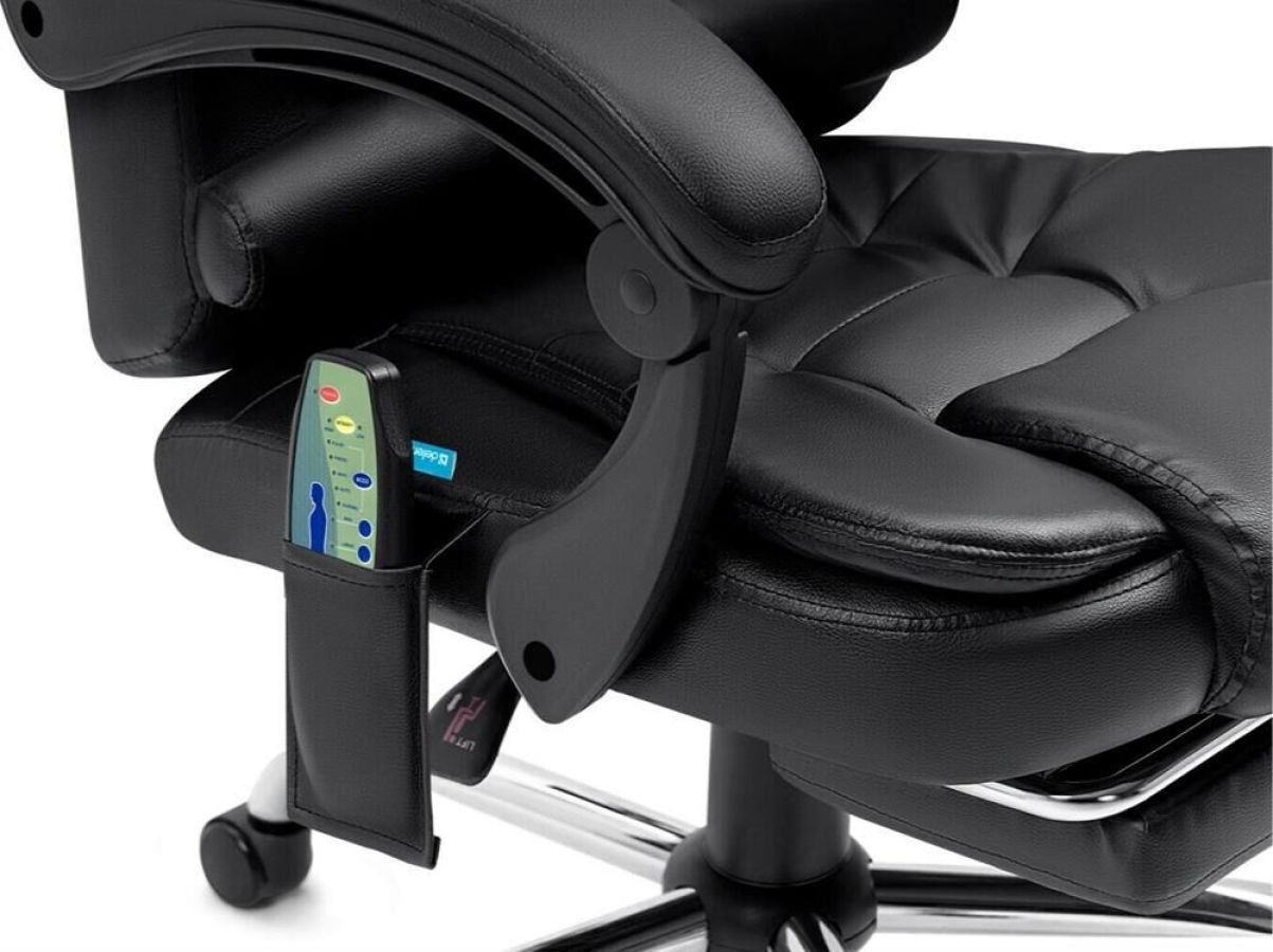 Компьютерное кресло с функцией вибромассажа - у данной модели 7 встроенных массажных головок. Высокий уровень комфорта обеспечивается за счет спинки, которая отклоняется до 135°, мягких подлокотников и подставки для ног. Выбирать тип массажа и регулировать его интенсивность можно с помощью пульта управления, которым комплектуется кресло.