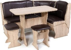 Кухонный уголок Орхидея-это практичное решение для обустройства кухонных пространств. Этот комплект включает в себя обеденный стол, две табуретки и комфортабельное мягкое сиденье, создавая идеальное место для приема пищи, общения и расслабления. Габариты: ВхГхШ (880х530х1480 (1080)) мм. Стиль: Классика. Обивка: экокожа. Цвет обивки: umber (шоколад). Ящик для хранения: да. Цвет корпуса: дуб сонома. Суммарный объем упаковки: 0,255 куб.м.
