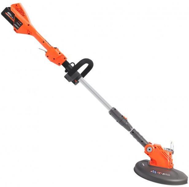 Ширина скашивания травы, мм 300 Ширина скашивания леской, мм 300 Ширина скашивания ножом, мм нет Диаметр режущей лески, мм 1,6 Рекомендуемая площадь обработки, м² 300 Тип рукоятки D-образная Тип штанги регулируемая по высоте Регулировка высоты ручки есть Приводной вал без приводного вала Форма штанги прямая Режущий элемент леска Тип ремня нет Расположение двигателя нижнее Частота вращения, об/мин 7000 Тип двигателя коллекторный Напряжение аккумулятора, В 40 Емкость аккумулятора, А*ч 4 Тип аккумулятора Li-ion Время работы на одном заряде до 50 минут Время зарядки аккумулятора до 2 часов Аккумулятор и ЗУ в комплекте один АКБ и ЗУ Уровень шума при работе, дБ 96