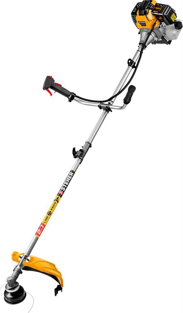 Габариты, см: 103x29x31 Мощность, л.с.: 3.3 Плечевой ремень: есть Приводной вал: жесткий Тип двигателя: бензиновый Тип ручки: u-образная (велосипедная) Частота вращения шпинделя, об/мин: 9000 Ширина скашивания для ножа, мм: 255 Мощность, кВт: 2.5 Режущий элемент: леска/диск Вес, кг: 7.4 Объем двигателя, см3: 52 Емкость бака, л: 1.2 Толщина лески, мм: 2 Ширина скашивания для лески, мм: 470 КОМПЛЕКТАЦИЯ: Коса бензиновая - 1 шт. Велосипедная рукоятка - 1 шт. Кожух защитный - 1 шт. Нож - 1 шт. Катушка с леской - 1 шт. Ключ (свечной, гаечный, имбусовый) - 3 шт. Фиксатор вала - 1 шт. Плечевой ремень - 1 шт. Емкость для смешивания - 1 шт. Руководство по эксплуатации - 1 экз.