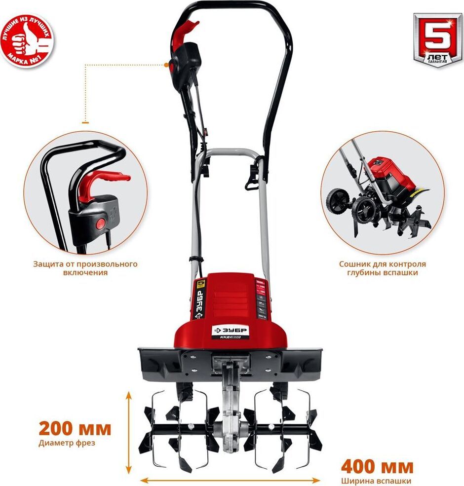 Cошник. Глубина вспашки, мм200. Тип редуктора червячный. Ширина вспашки, мм400. Число скоростей 1 вперед. Тип двигателя электрический, синхронный. Мощность, Вт1800. Масса изделия, кг11.6. Масса в упаковке, кг13.5. Габариты, см41x44x133. Колеса для перемещения.