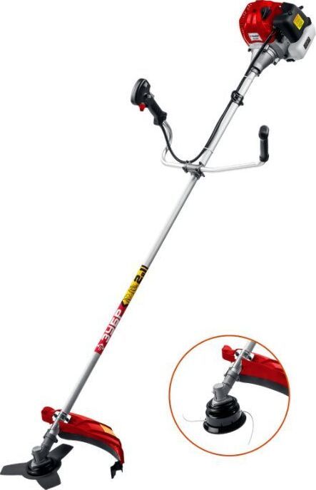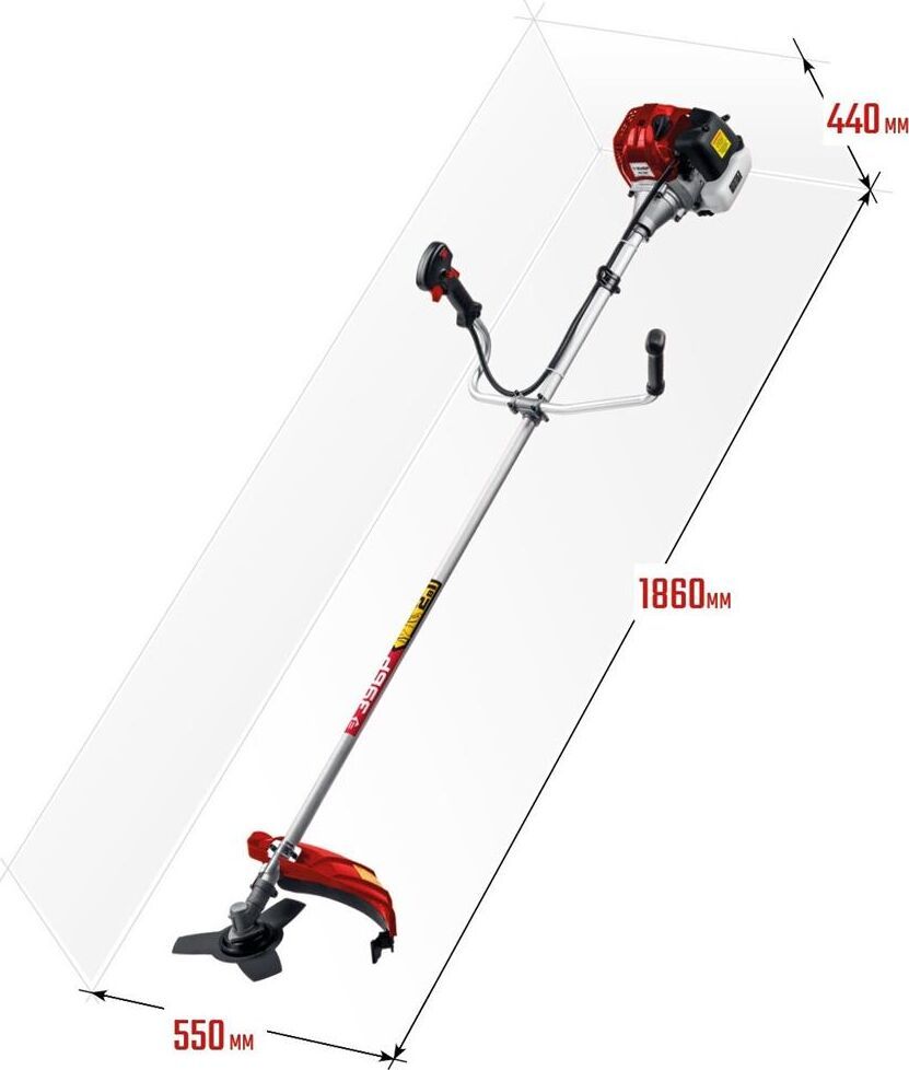 Мощность, кВт 1. Объем двигателя, см3-33. Максимальная частота вращения, об/мин 9000. Ширина скашивания леской/ножом, см 47/25.5. Емкость топливного бака, мл 950. Тип режущего элемента леска/нож. Диаметр лески, мм 2. Тип катушки полуавтоматическая. Тип рукоятки велосипедная. Тип штанги неразъемная. Тип приводного вала жесткий. Плечевой ремень. Антивибрационная система . Праймер . Масса изделия, кг 6.6. Масса в упаковке, кг 8.3. Габариты, см 103x29x31.