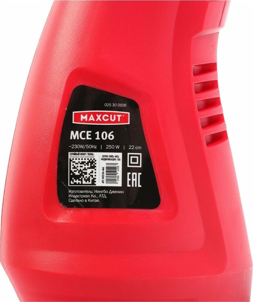 Мощность 360Вт, Напряжение 220-230В, 50Гц, Диаметр лески 2.0-2.4мм, Захват 22см, Вес 1.2кг. Представляем вашему вниманию новинку от производителя Maxcut – электротриммер модели MCE 106. С покупкой триммера борьба с лишней растительностью больше не будет сложной задачей, отнимающей много времени и сил. Данная модель представляет собой очень тихий и легкий инструмент, который станет отличным помощником для дачников и садоводов.Он настолько прост и легок в эксплуатации, что с ним могут работать как пожилые люди, так и женщины. Электрический триммер отличается эргономичным исполнением, хорошим балансом и очень удачным сочетанием качества и цены.
