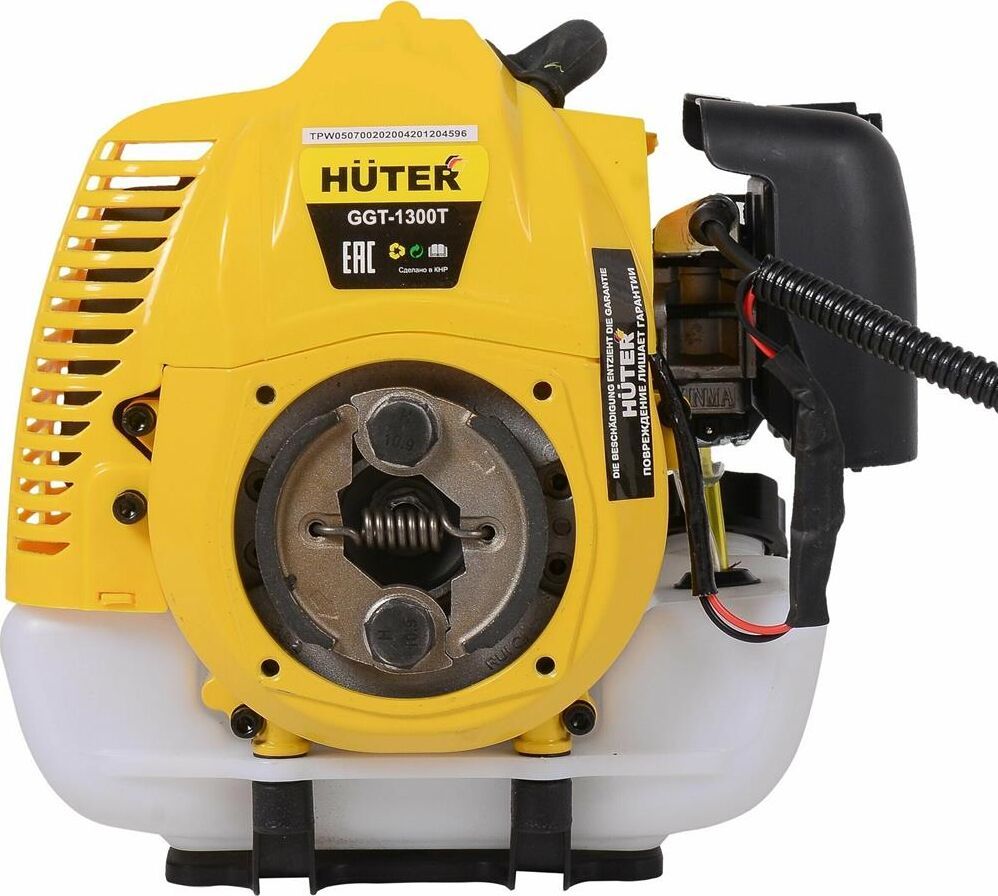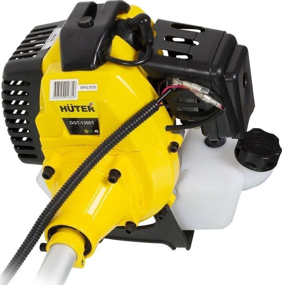 Бензиновый триммер Huter GGT-1300T – это устройство, которое используется для обработки газона на приусадебных территориях. С его помощью можно обеспечить ровный срез травы, бурьяна или густых зарослей. Оборудование подходит для ручного применения, отличается относительно небольшим весом и высокой рабочей производительностью. Триммер оснащается бензиновым двигателем, а в качестве топлива используется бензин с примесью масла. С помощью системы воздушного охлаждения обеспечено сохранение оптимальной рабочей температуры в процессе обработки территории. Мощность: 1300 Вт. Тип двигателя: бензиновый. Число тактов: 2. Способ охлаждения: воздушный. Объем двигателя: 42,7 см3. Мощность двигателя: 1,77 л.с.. Тип топлива: бензин АИ-92. Тип штанги: неразъемная. Система гашения вибрации: есть. Тип режущего инструмента: леска / нож. Ширина скашивания леской: 460 мм. Ширина скашивания ножом: 255 мм. Резьба триммерной катушки: М10х1,25 LH. Посадочный диаметр: 25,4 мм. Тип ножа: 3Т. Приводной вал: гибкий.