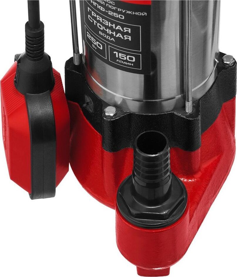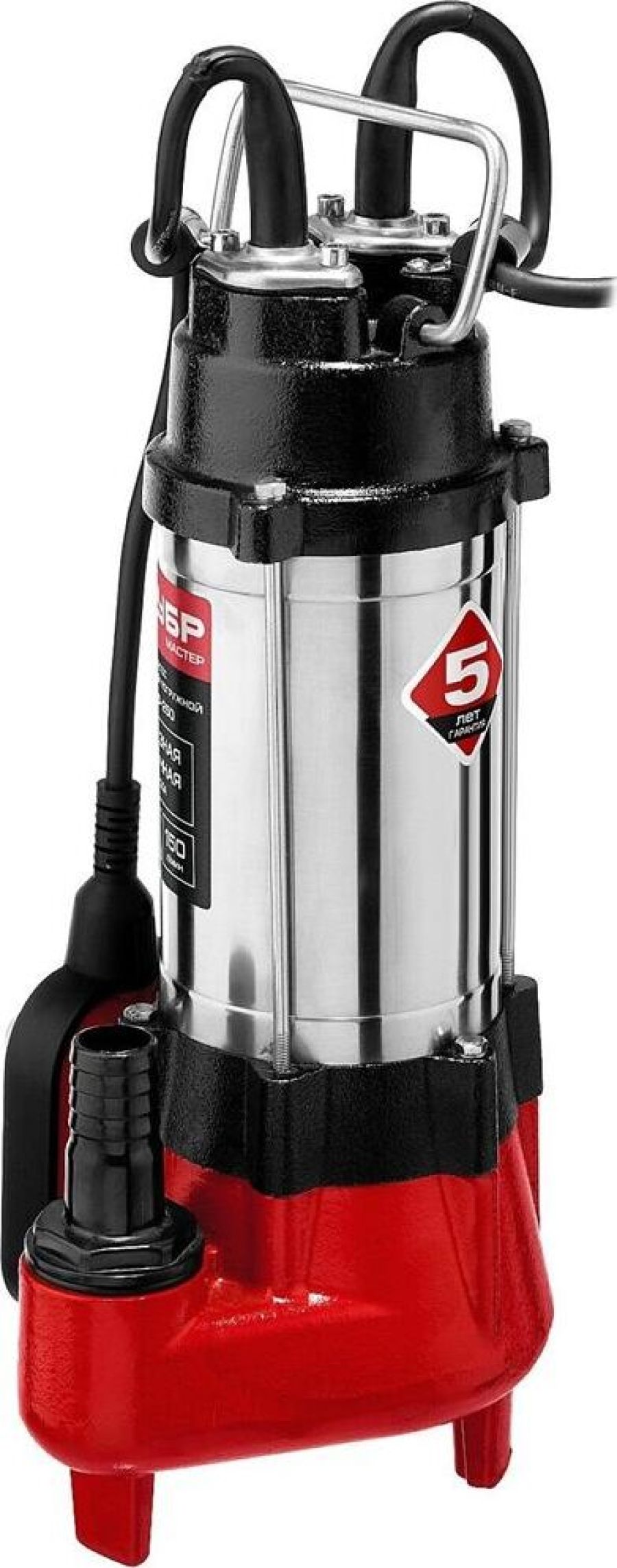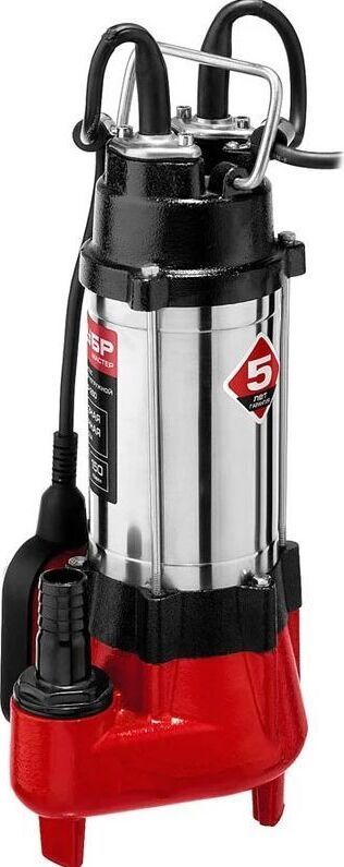 ЗУБР НПФ-250 фекальный насос реимущества Тип погружной фекальный Мощность, Вт 250 Производительность, л/мин 150 Напор, м 7.5 Макс. глубина установки, м 5 Макс.размер пропускаемых частиц, мм 15 Материал корпуса метал, чугун Присоединительная резьба, дюйм 1 1/4 Термопредохранитель есть Откачка загрязненных бытовых, сточных и смешанных вод, содержащих крупные включения (фекалии), чистых, дождевых, дренажных и грунтовых вод Корпус из чугуна и нержавеющей стали значительно увеличивает срок службы устройства Поплавковый выключатель обеспечивает автоматическое включения/выключения при изменении уровня воды Регулировка уровней включения/выключения насоса Для исключения образования воздушных пробок в рабочей полости насоса имеется клапан Во время эксплуатации насос не требует никакого обслуживания Термопредохранитель для защиты от перегрева Клапан, защищающий от образования воздушных пробок в рабочей полости Соединительный штуцер 1 1/4