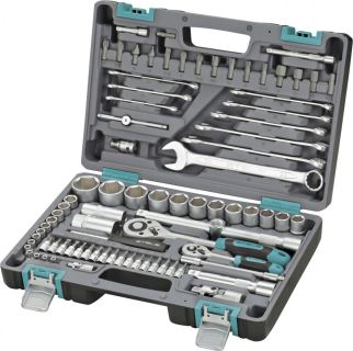 В набор входит 94 предмета. Привод 1/2“ DR • Головка торцевая 6-гранная: 10, 11, 12, 13, 14, 15, 16, 17, 18, 19, 20, 21, 22, 23, 24, 27, 30, 32 мм; • Головка торцевая глубокая 6-гранная: 14, 15, 17, 19 мм; • Головка торцевая свечная: 16, 21 мм; • Рукоятка трещоточная 45 зубцов; • Удлинитель: 125, 250 мм; • Адаптер для воротка 3/8" х 1/2"; • Карданный шарнир; • Держатель бит; • Ключ шестигранный Г-образный: 1.5, 2, 2.5 мм. Биты 5/16"HDR х 30 мм • Бита TORX: Т40, Т45, Т50, Т55; • Бита шестигранная: H8, H10, H12, H14; • Бита шлицевая: SL8, SL10, SL12; • Бита крестовая: PH3, РН4; • Бита POZIDRIV: PZ3, PZ4. Привод 1/4“ DR • Головка торцевая 6-гранная: 4, 4.5, 5, 5.5, 6, 7, 8, 9, 10, 11, 12, 13, 14 мм; • Головка торцевая глубокая 6-гранная: 6, 7, 8, 9, 10, 11, 12, 13 мм; • Рукоятка трещоточная 45 зубцов; • Удлинитель: 50, 100 мм; • Вороток Т-образный 115 мм; • Отверточная рукоятка; • Удлинитель гибкий 150 мм; • Карданный шарнир; • Головка со вставкой TORX