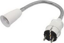 Ecola base Переходник вилка-патрон E27 гибкий 300мм без выключателя Белый, материал PBT.