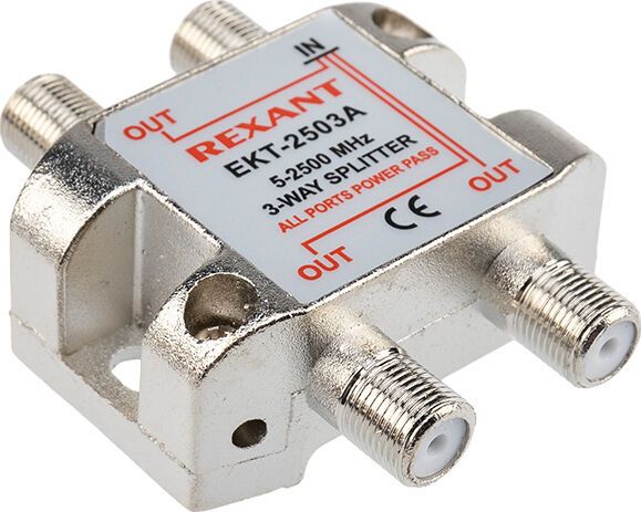 Телевизионный делитель это удобное средство для разделения сигнала на несколько равных частей. Антенные делители ,также называемые телевизионные сплиттеры часто используются, когда требуется подключить один телевизионный кабель, идущий от антенны, сразу к нескольким телевизорам или ресиверам. Особенно это актуально в многокомнатных квартирах или многокомнатных загородных домах. Делитель имеет один вход под F разъем и три выхода, также под F разъемы. Сигнал, подающийся на вход делителя, делится на три равные части и передается на выходы. Для подключения кабелей используются стандартные F-разъемы. Полоса пропускания делителя от 5 до 2500МГц позволяет использовать его в системах спутникового телевидения.
