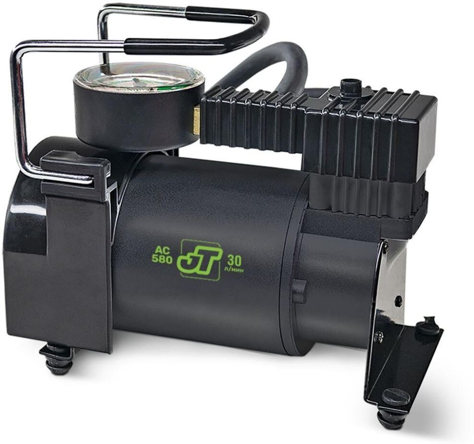 Автомобильный компрессор JT "AC580" предназначен для накачки воздухом шин легковых и коммерческих автомобилей, мячей и матрасов. Максимальный ток потребления: 11 А Напряжение: 12 В Мощность: 150 W Максимальное давление: 7 Атм. Производительность: 30 л/мин. Рабочая температура: от -35°С до +80°С Длина кабеля: 2,5 м Длина шланга: 75 см Масса: 1,45 кг Комплектация: • Компрессор • Набор насадок • Сумка для хранения