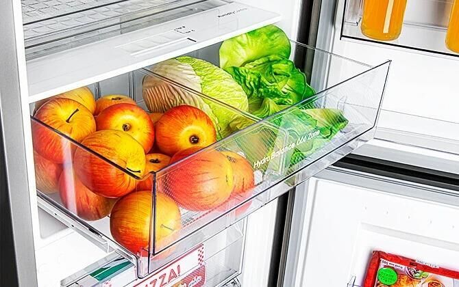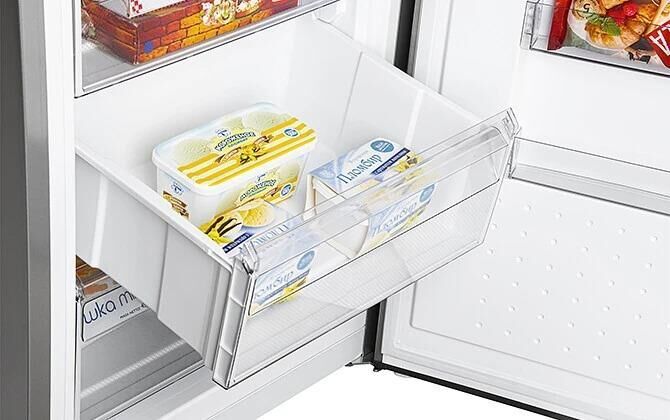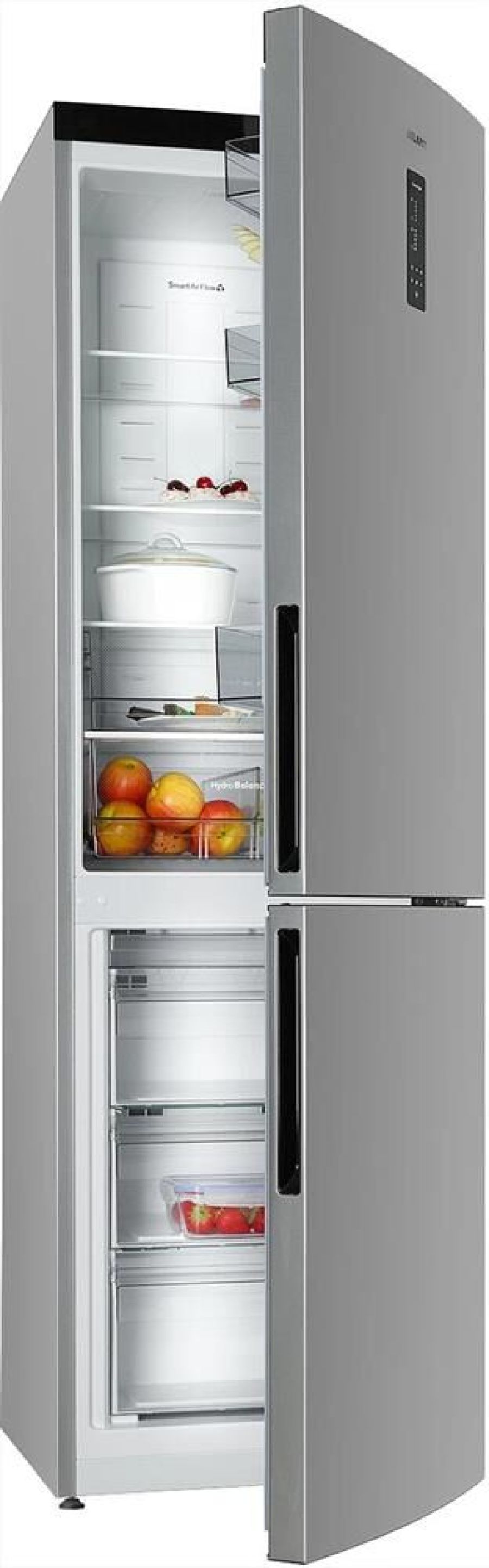 Двухкамерный с нижней морозильной камерой. Габариты Ш/Г/В 595/660/1968мм. Общий объём 368л. Вес 77 кг. Система охлаждения FULL NO FROST. Цвет корпуса серебристый. Класс энергоэффективности А+. Уровень шума 42 дБА. Климатический класс SN, N, ST. Внутреннее LED освещение. Электронный блок управления и индикации. Тип ручки скрытая. Полный полезный объем 329л. Полезный объем холодильной камеры 235 л. Полезный объем морозильной камеры 94 л. Самодиагностика. Температура хранения свежих продуктов, до 8 °C. Средняя температура хранения свежих продуктов 4 °C. Функция Отпуск, суперохлаждение, звуковая сигнализация. Номинальное время повышения температуры продуктов от -18 °C до -9 °C при отключении электроэнергии 15 ч. Температура хранения замороженных продуктов в морозильной камере -18 °C. Мощность замораживания при температуре окр. среды +25°С – 10кг/сутки. Функция быстрого замораживания. Функция охлаждения напитков.